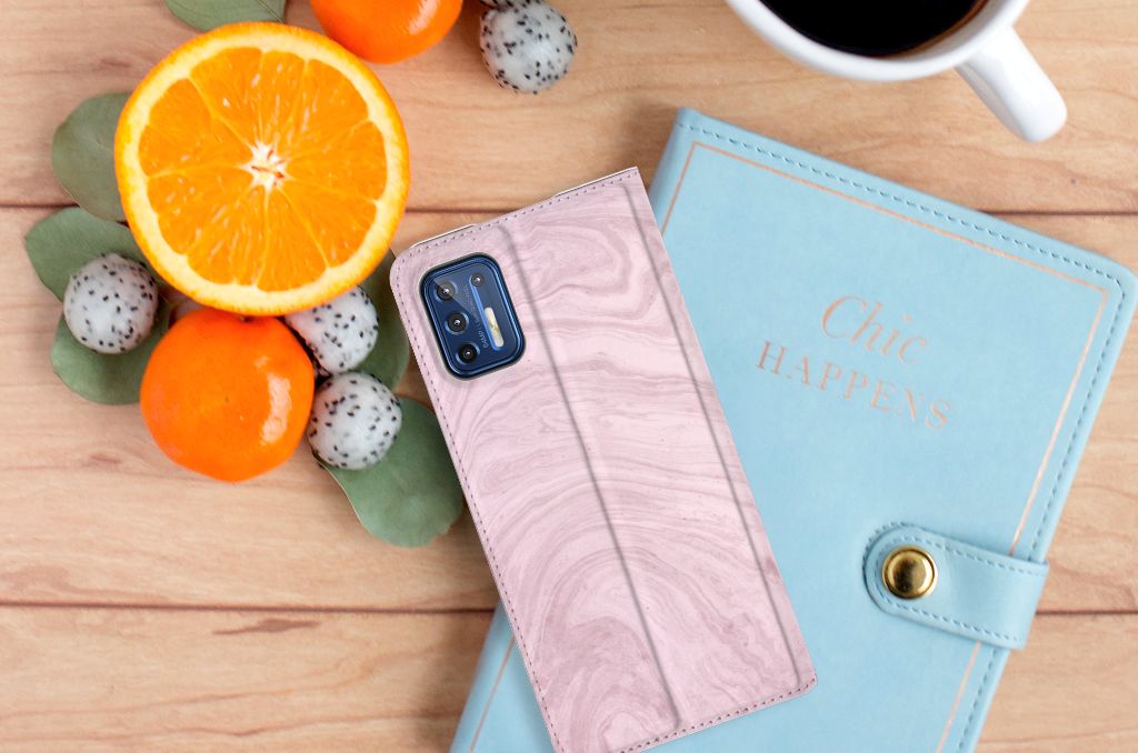 Motorola Moto G9 Plus Bookcase Marble Pink - Origineel Cadeau Vriendin