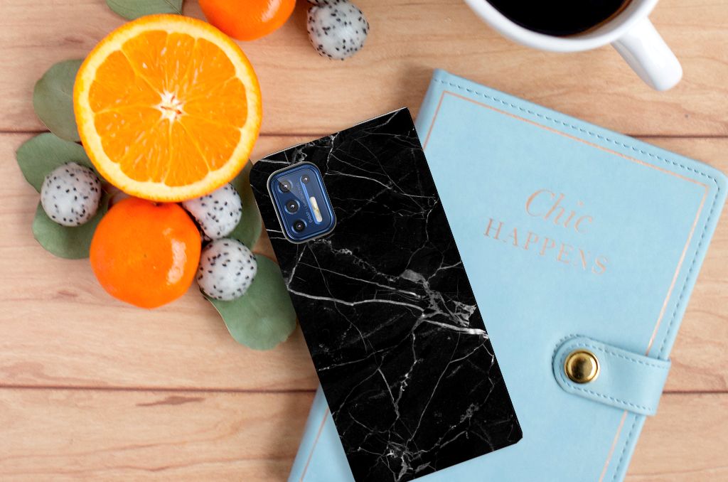 Dit design hoesje met Marmer Zwart is voor de artistieke personen onder ons. De Grieken en Romeinen wisten het materiaal al te waarderen door het in de bouw toe te passen. Naast het witte marmer met haar zacht grijze geaderde belijning zijn de diverse soorten in een gevarieerd kleurenpallet te krijgen. We hebben mooie kleuren op design hoesjes gezet, zoals in dit geval zwart marmer. Dit is een Motorola Moto G9 Plus Standcase met marmer in zwarte kleur. Het marmer wordt bedrukt op alle zijden van een stand case, die beschikt over 1 vakje voor een pasje en een magnetische sluiting aan de binnenzijde. Verder heeft de hoes een houder van TPU. De rijkdom aan kleuren en varianties in afwerking geeft ontwerpers de vrijheid om met marmer hele mooie architectonische projecten te realiseren. Wij hebben onze ontwerper tevens veel vrijheid gegeven. Het resultaat zie je terug in deze stand case met zwart marmer, dat de ideale bescherming voor jouw smartphone biedt.
