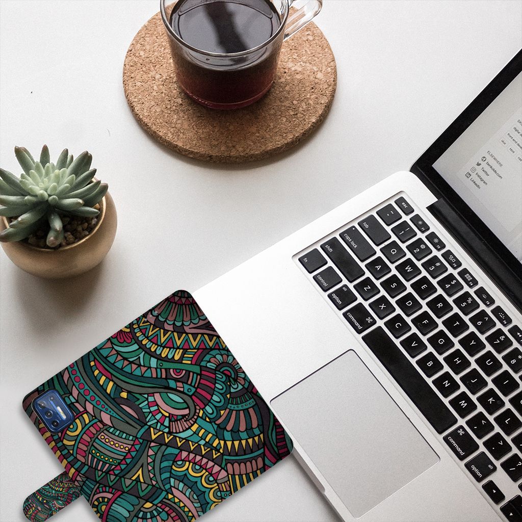 Motorola Moto G9 Plus Telefoonhoesje met ruimte voor drie pasjes Aztec