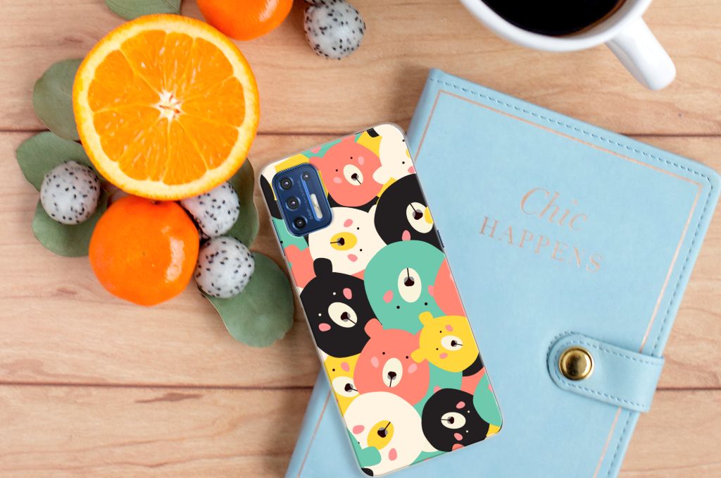 Op dit hoesje vind je een bereschattig ontwerp! Vergeef ons de woordgrap, maar hoe moeten we dit lieve ontwerp anders omschrijven? Op dit knuffelige ontwerp zie je leuke, getekende beertjes in vrolijke kleuren als geel, blauw en roze. Dankzij de contrasterende witte en zwarte beertjes vallen de felle kleurtjes nog meer op. Al met al is dit Telefoonhoesje met Naam voor de Motorola Moto G9 Plus een perfect hoesje voor de knuffelberen onder ons. TPU is flexibel en onbreekbaar. Zo is je telefoon aan de achterkant en de randen heel goed beschermd. De case met het Bears-design is aan de bovenkant bedrukt, de randen blijven transparant. Het TPU-hoesje is perfect te combineren met een screenprotector, zo zijn je telefoon en je beeldscherm perfect beschermd.