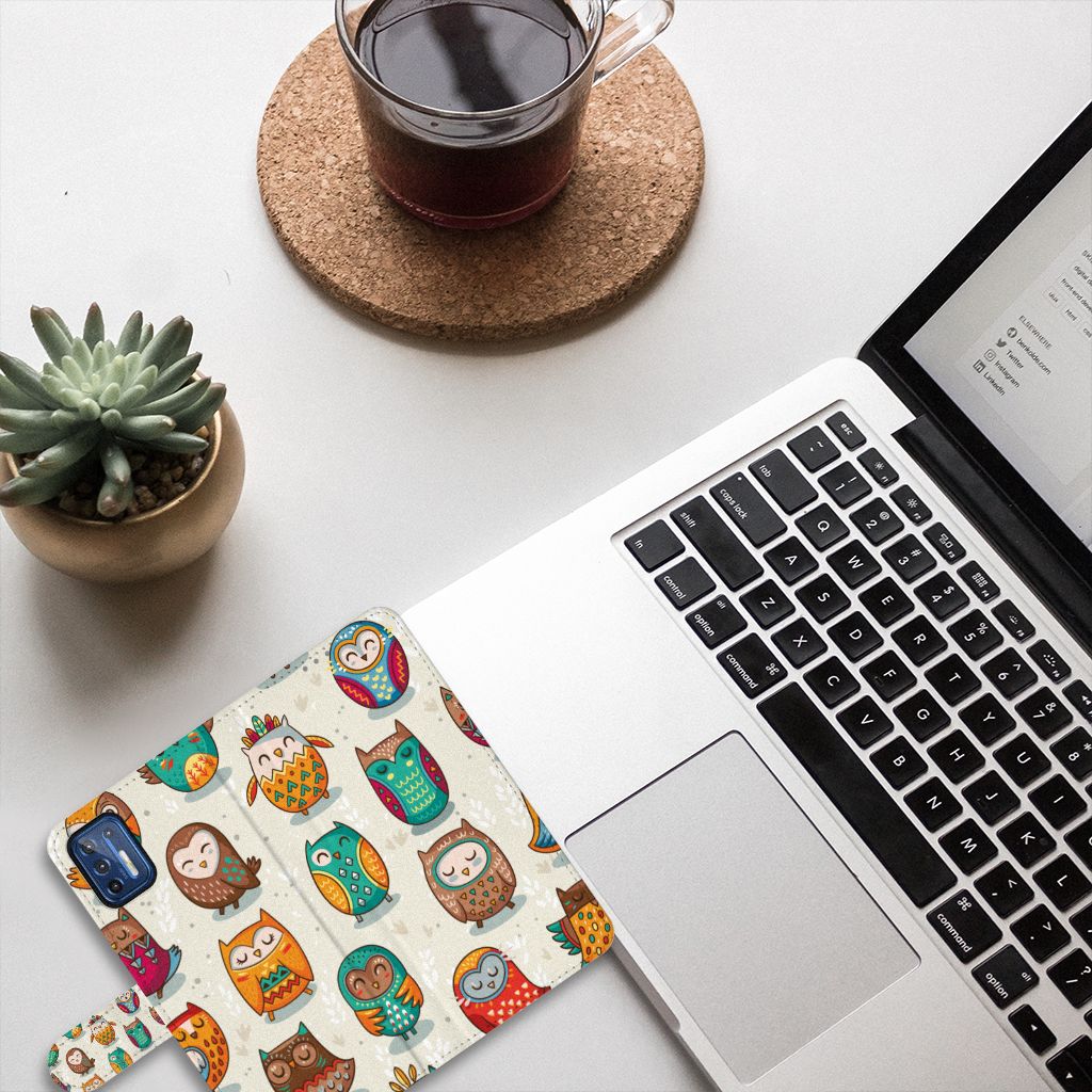 Motorola Moto G9 Plus Telefoonhoesje met ruimte voor drie pasjes Vrolijke Uilen