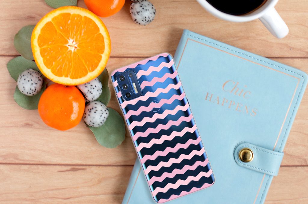 Dit design hoesje met Waves Roze afdruk is speciaal op maat gemaakt voor jouw telefoon. We hebben verschillende kleurstellingen gebruikt in het design, zodat de case er spannend en leuk uitziet. Dit licht roze hoesje met verschillende soorten golven ziet er opwindend uit. Het Motorola Moto G9 Plus TPU bumper wordt in ons eigen magazijn bedrukt, vandaar dat we de kosten zeer laag kunnen houden. Wij kunnen het duurzame hoesje met licht roze golven zeer snel leveren. Heb jij altijd al een design hoesje met verschillende soorten licht roze willen hebben? Deze TPU case met licht roze golven wordt alleen aan de bovenkant bedrukt en is zeer flexibel. De randen van het hoesje met licht roze golven blijven transparant en worden niet bedrukt. Met dit licht roze hoesje past jouw telefoon altijd in je broekzak.