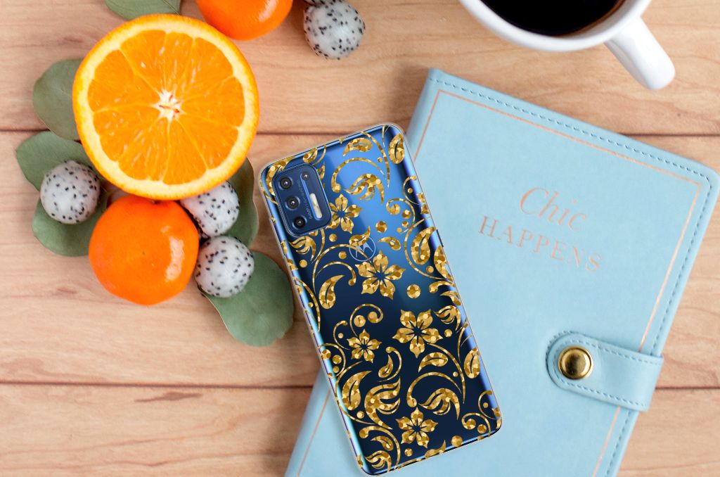 Ben je op zoek naar een uniek telefoonhoesje voor je Motorola Moto G9 Plus? Dan ben je bij B2C Telecom aan het juiste adres! Speciaal voor jou hebben we dit prachtige Gouden Bloemen design in onze collectie hoesjes opgenomen. Het design wordt bedrukt op een TPU Case en is gemaakt van flexibel rubber. Het design wordt alleen aan de bovenkant van het hoesje bedrukt en de randen blijven transparant. Aan de zijkanten zijn uitsparingen gemaakt waardoor je met gemak alle knoppen en poorten kunt bedienen. Wij adviseren om dit hoesje in combinatie met een screenprotector te gebruiken voor een langere levensduur van je telefoon. Wil je dit design hoesje nog iets extra's geven? Voeg dan gratis je naam of een quote toe! Is dit design hoesje toch niet helemaal wat je zocht? Ontwerp dan zelf een hoesje in ons ontwerpprogramma.
