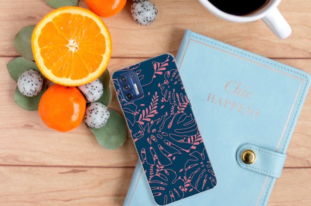 Je voelt je verbonden met de natuur als je kiest voor deze Motorola Moto G9 Plus TPU Case met print van roze bladeren op een blauwe achtergrond. De print bestaat uit verschillende roze bladeren en dit zorgt voor een fraai decoratief geheel. Met dit patroon van roze bladeren op een blauwe achtergrond creëer je een opvallende uitstraling voor jouw smartphone. Jij doet er verstandig aan om je telefoon te beschermen met dit design hoesje met roze bladeren op een blauwe achtergrond, die staan op een tpu case. Dit tpu hoesje kenmerkt zich onder meer door de opstaande randen aan de voorzijde, waardoor bij een val van de smartphone het scherm de grond niet raakt. Voel jij jezelf happy bij een beeld van roze bladeren op een blauwe achtergrond, dan is deze tpu case met print een uitstekende optie. Het beschermt jouw telefoon aan de achterkant en zijkanten zeer goed. Het TPU is zeer flexibel en onbreekbaar. De zijkanten van de case blijven transparant.
