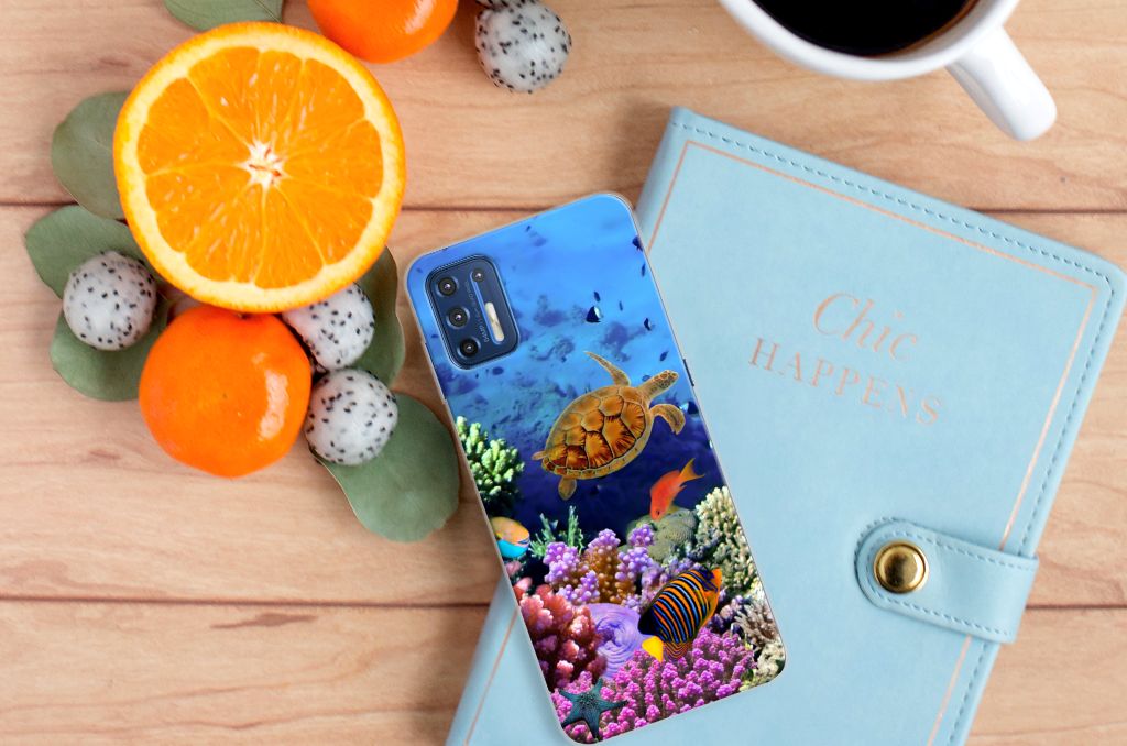 Dit kleurrijke hoesje met tropische Vissen is een ware eyecatcher. Als je aan het duiken bent en je treft een school aan met dit soort opvallende vissen, dan heb je een geweldige ervaring. Maar je hoeft er eigenlijk niet per se het water voor in te duiken. Want wij hebben een schitterende verzameling vissen op dit design hoesje gezet. Met onze zeer geavanceerde printer zetten we de afbeelding van vissen op de bovenkant van de Motorola Moto G9 Plus TPU Hoesje, de randen blijven transparant. De case is gemaakt van zeer elastisch en onbreekbaar materiaal. Verder is je telefoon natuurlijk goed beschermd met deze tpu case met print van vissen. Deze case heeft tevens opstaande randen, waardoor je scherm de grond niet zal raken als de smartphone uit je handen valt.