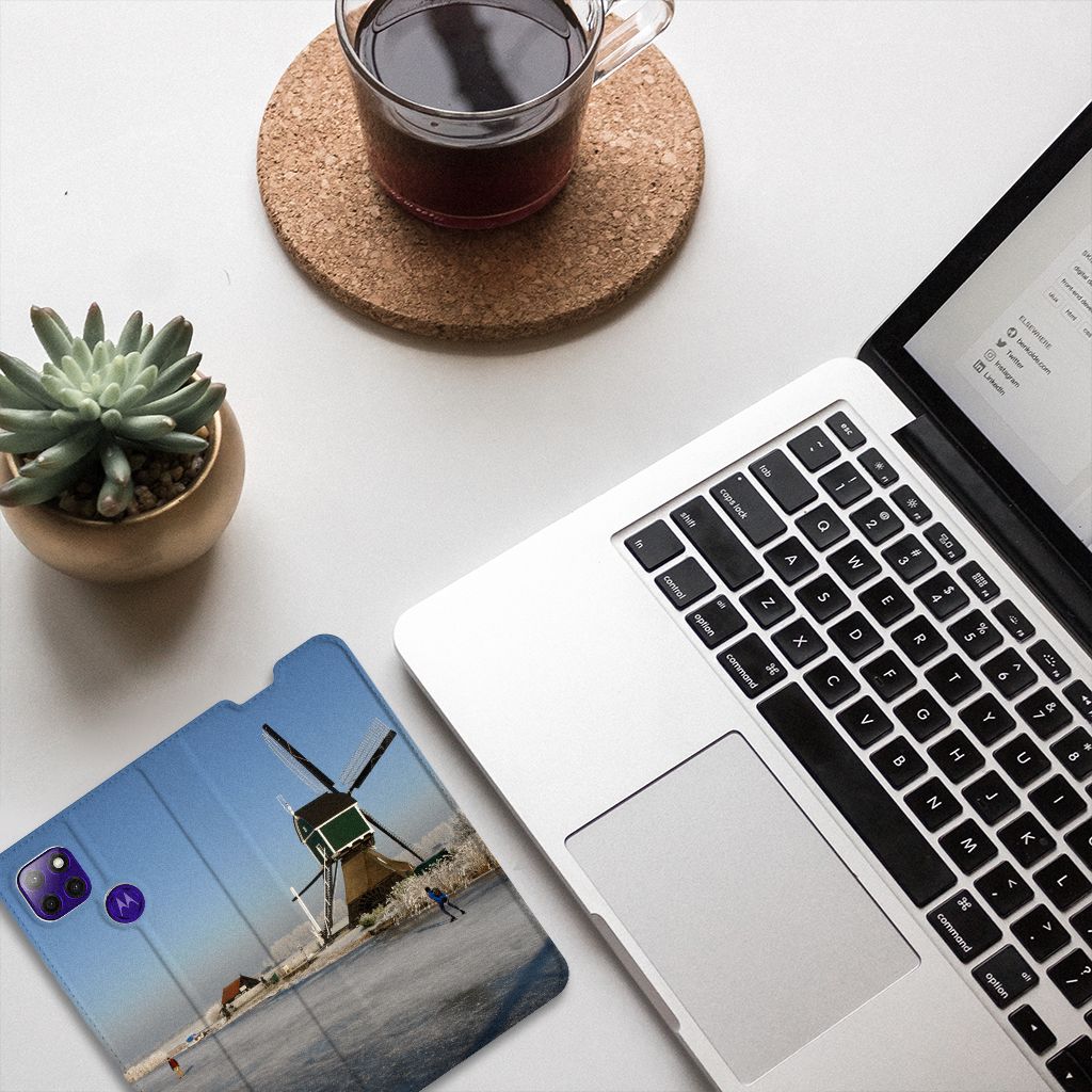 Deze mooie Motorola Moto G9 Power Book Cover met schaatsers is een typisch Hollands product. Schaatsen is een van de oudste Nederlandse volkssporten en wordt van jongs af aan geleerd. Hoewel schaatsen ook in andere landen van het noordelijk halfrond in trek is, met name in Scandinavië (Zweden, Finland, Noorwegen), blinken Nederlanders er pas echt in uit. Mocht jij met dit hoesje met schaatsers in het buitenland aankomen zetten, dan is het meteen duidelijk waar je vandaan komt. Deze stand case is perfect op maat gemaakt en heeft een vakje voor een pasje of briefgeld. Daarnaast is de magneet aan de binnenkant zeer handig. Alle zijden van de case worden bedrukt met schaatsers en de houder aan de binnenzijde is van tpu. Dit is erg flexibel materiaal. De case heeft ook een standaard.