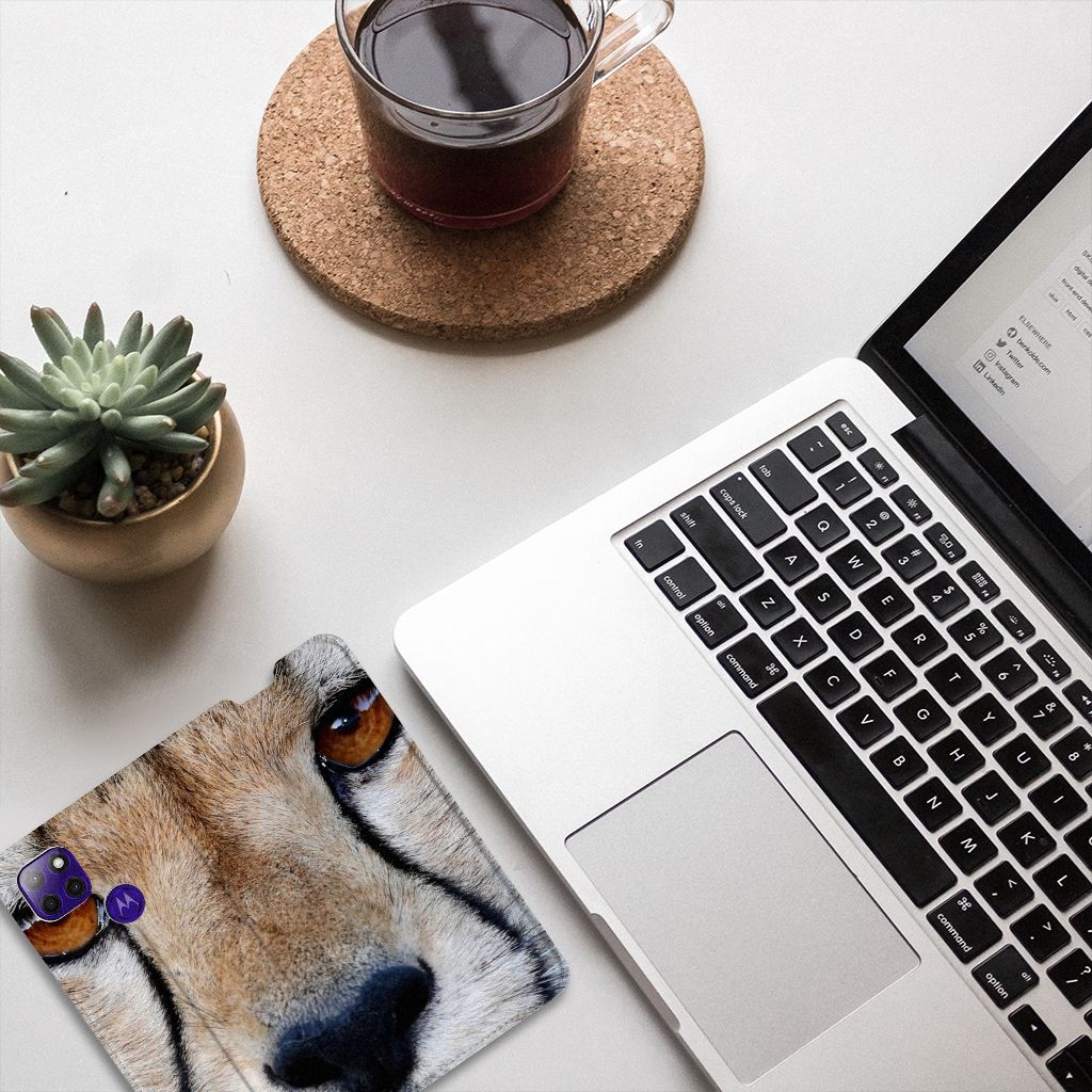 Wist je dat een cheetah, ook wel jachtluipaard genoemd, een topsnelheid van 120 km/u kan halen? Dit maakt de cheetah tot het snelste landdier ter wereld. Dit design hoesje met cheetah print kunnen we dus met recht zeer flitsend noemen. Dit komt niet alleen door de foto van het jachtluipaard, maar ook door de uitstraling van het hoesje. De close up van het dier hebben we op een stand case gezet. Dit is een multifunctionele case, met een vakje aan de binnenzijde waarin je een pasje kwijt kunt. Hiermee is de kous nog niet af, want een Motorola Moto G9 Power Hoesje maken wordt aan de binnenzijde magnetisch afgesloten en heeft een standaard. De vacht van jachtluipaarden is bedekt met ronde, zwarte vlekjes. Hierdoor valt het dier in zijn natuurlijke leefomgeving zo min mogelijk op. Jij doet dat zeker wel, met deze stand case met design. De buitenzijde is van leer, de houder aan de binnenzijde van TPU.