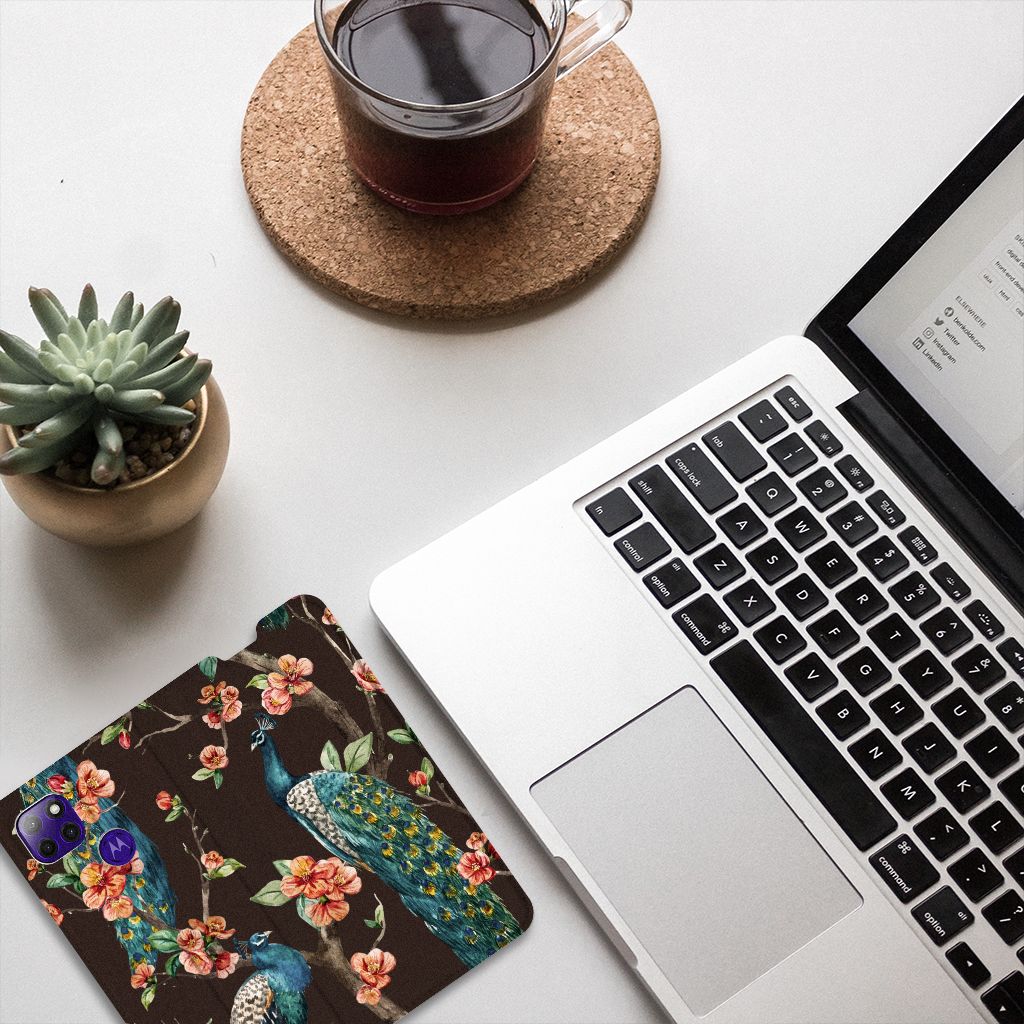 Op deze Motorola Moto G9 Power Hoesje maken kun jij zo trots als een pauw zijn. Met dit geweldige design hoesje met een Pauw met Bloemen erop kun jij je smartphone voor zeer lange tijd beschermen. Deze stand case is zeer duurzaam en heeft aan de binnenkant een opbergvakje, waarin je een fitnesspas of pinpas kwijt kunt. Met een stand case met fleurige bloemen en trotse pauwen wordt jouw telefoon er een stuk mooier op. De onderscheidend case heeft een houder van TPU en een magneet aan de binnenkant. Zie jij liever jouw eigen huisdier op een telefoonhoesje? Dan adviseren we je zelf een hoesje te ontwerpen met onze unieke Phone Case Designer. We bedrukken alle zijden van de stand case, met duurzame inkt.