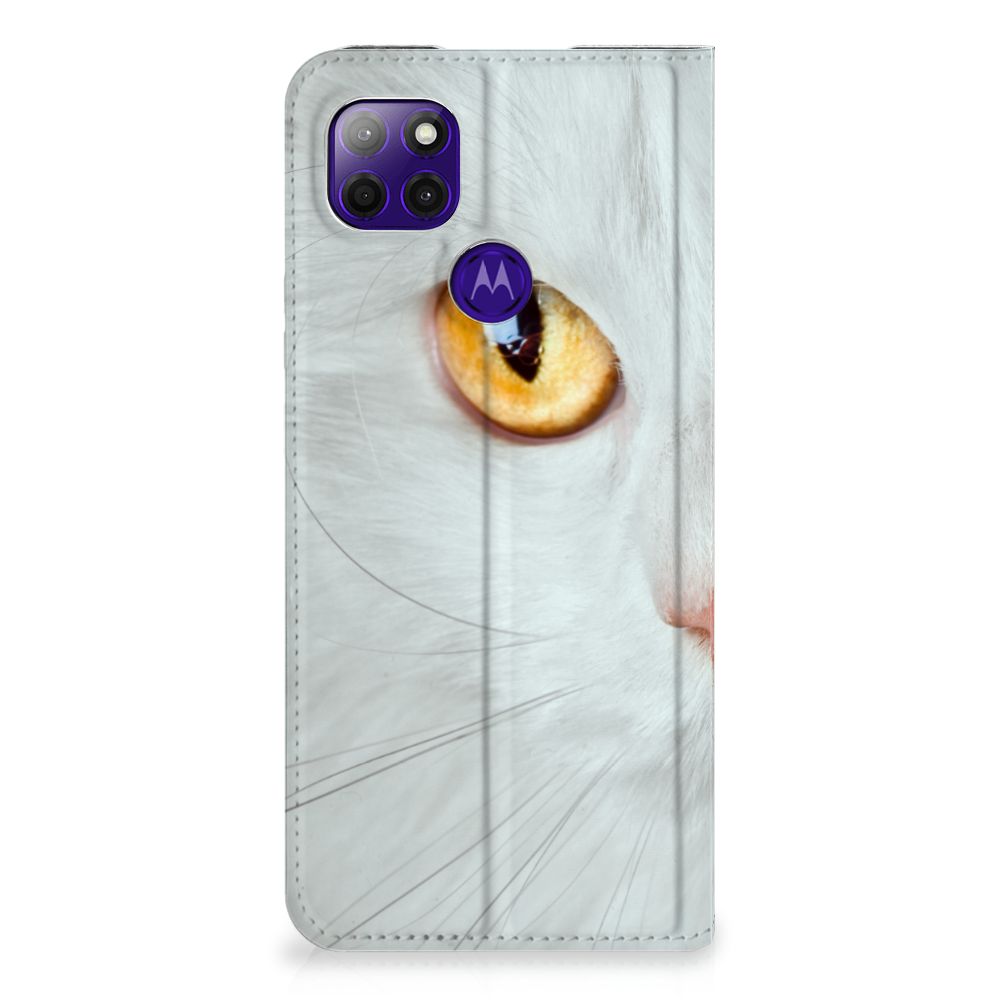 Witte katten zijn natuurlijk extra speciaal, vandaar we een exemplaar op een design hoesje hebben gezet. Een witte kat schijnt trouwens ook slechter te kunnen horen dan katten met een andere kleur. Deze witte kat staat op een zeer prominente wijze op een stand case. Deze stand case met witte kat ziet er geweldig uit en is voorzien van verschillende uitsparingen en een speciale standaard. Een Motorola Moto G9 Power Hoesje maken met witte kat beschermt jouw smartphone perfect. Alle zijden van de case zijn bedrukt. Jouw smartphone wordt erg duurzaam met dit design hoesje. Het TPU aan de binnenzijde is zeer flexibel en het pu-leer oogt chique. Verder heeft de case een houder voor bijvoorbeeld je rijbewijs aan de binnenkant.