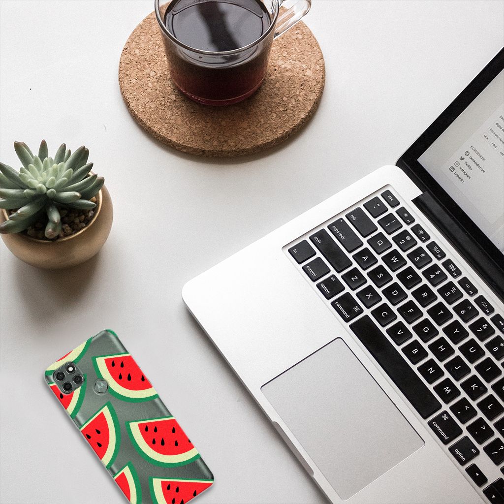 Watermeloenen zijn uitstekende dorstlessers, misschien dat je daarom juist in de zomermaanden extra enthousiast raakt van dit design hoesje Watermelons. Jij blijft gezond als je zo nu en dan een watermeloen neemt, jouw smartphone blijft in tact als je er deze Motorola Moto G9 Power Siliconen Case omheen doet. Deze tpu case wordt alleen aan de bovenkant bedrukt met watermeloenen is zeer flexibel. De randen van het hoesje blijven transparant. Je kunt ook kiezen voor andere soorten fruit op je hoesje. Kijk maar eens naar onze andere design hoesjes op onze website.
