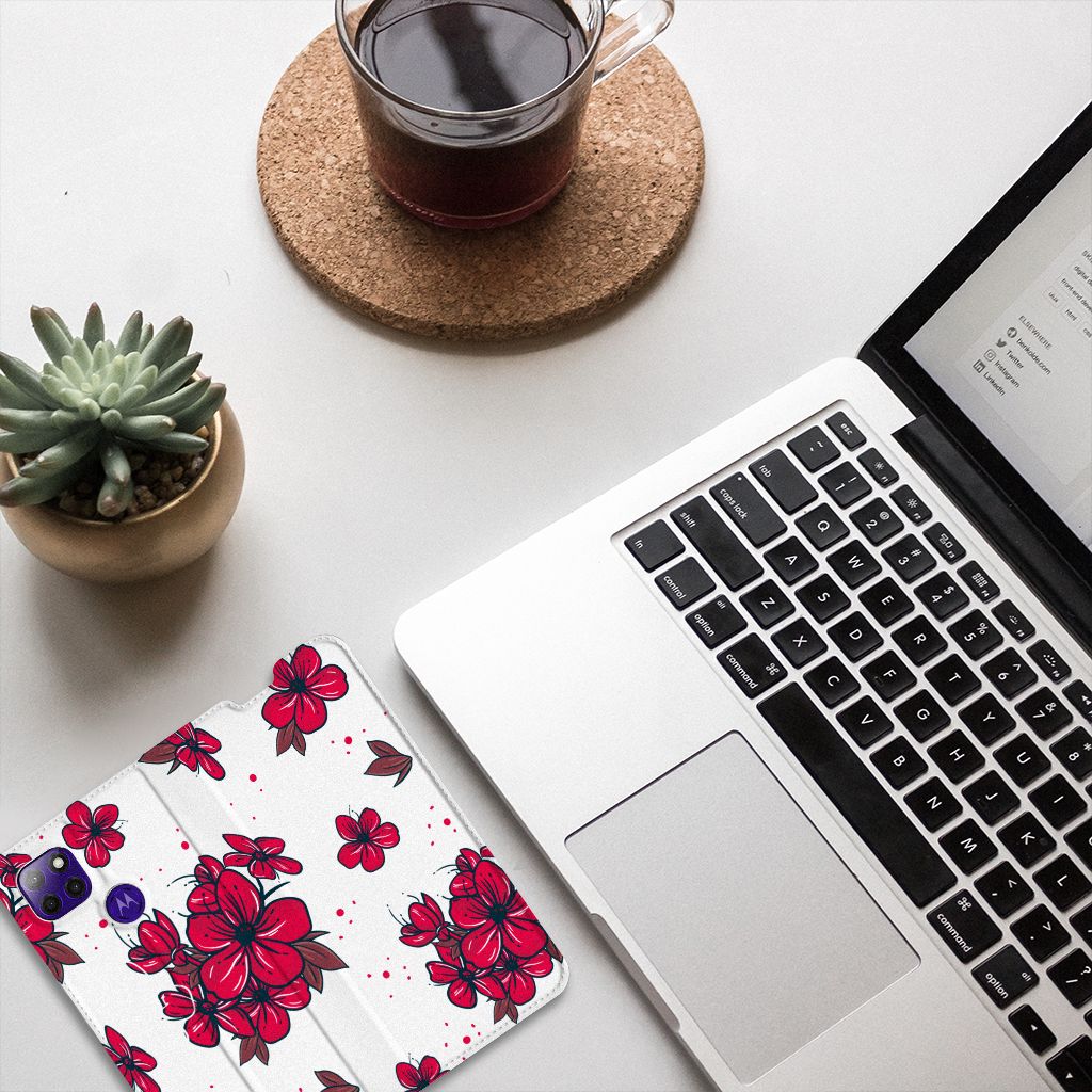 Wie denkt aan Japan, denkt al gauw aan die prachtige kersenbomen die in het begin van de lente in bloei staan en het land hullen in een prachtige zee van bloesem. Wie elke dag wil genieten van deze mooie kersenbloesem, kan natuurlijk ook kiezen voor dit mooie telefoonhoesje! Dankzij de witte achtergrond knallen de rode bloemetjes er mooi uit. Dit blossom red-design staat op een Smart Cover voor de Motorola Moto G9 Power. Dit populaire smartphonehoesje met het heeft één vakje voor een pasje of briefgeld en is aan alle zijden bedrukt. Met de standcase zet je je telefoon gemakkelijk neer, zodat je je handen vrij hebt als je bijvoorbeeld een video wilt kijken. De binnenkant van de standcase is van grijs PU-leer. Dat is fijn, omdat je daardoor niet snel vlekken ziet op je hoesje.