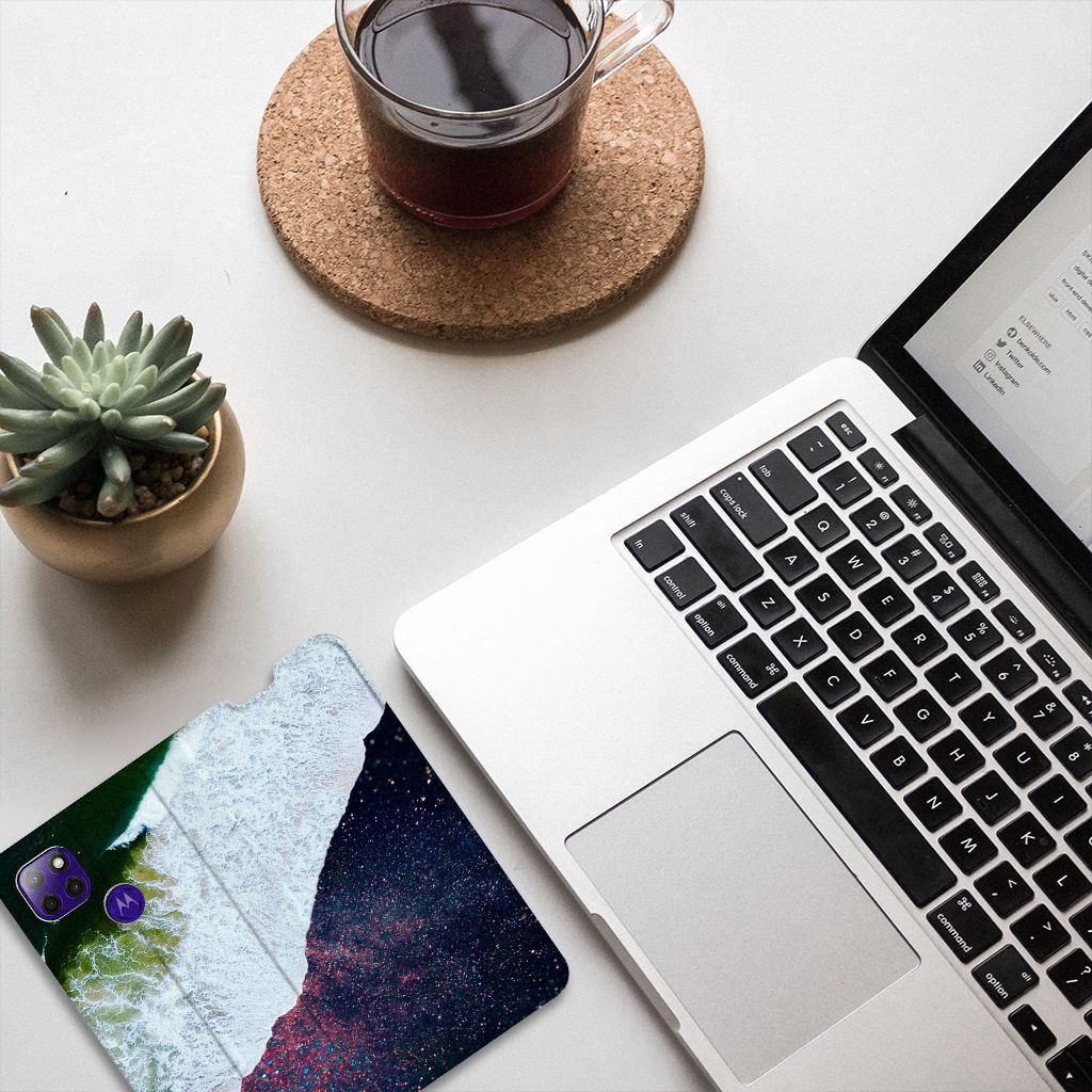 Ben je een beetje een artistiek type? Dan kan je wel eens enthousiast raken van dit smartphonehoesje. ‘Sea in Space’, zo noemt onze grafisch designer dit ontwerp. Dus mensen die van zon en zee kunnen genieten en tegelijkertijd van science fiction houden zullen deze case ongetwijfeld mooi vinden. Een beetje glitter en glamour zou je met een beetje fantasie ook nog wel kunnen ontdekken in dit design hoesje. Dit artistieke kunstwerkje is voor heel weinig geld te bestellen op onze website. Je krijgt er maximale bescherming van je Motorola Moto G9 Power voor terug. Het design staat op een Stand Case. Deze case beschermt jouw telefoon aan alle kanten en beschikt over een 1 opbergvakje en een speciale standaard. Het hoesje wordt afgesloten met een magneet aan de binnenzijde. De houder aan de binnenzijde is van TPU.