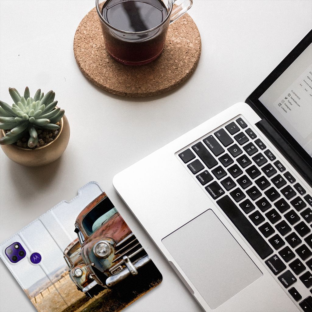 Autoliefhebbers met een voorkeur voor vintage zullen in hun nopjes zijn met dit design hoesje. We hebben een boekhoesje met print van Vintage Auto speciaal op maat gemaakt voor jouw smartphone. Door de achtergrond van dit hoesje krijgt de case met vintage auto’s echt een mooie retro look. Een Motorola Moto G9 Power Stand Case is een van onze meest populaire producten. Dit komt onder andere doordat ze jouw smartphone aan alle zijden beschermen. Verder is de case zeer praktisch. Wat denk je bijvoorbeeld van het vakje aan de binnenzijde en de magnetische sluiting. Verder heeft het hoesje een flexibele en stevige houder van TPU aan de binnenzijde. Zie je liever je eigen auto staan op de stand case? Dan raden we je aan zelf een stand case met foto’s van auto’s te ontwerpen op onze website.