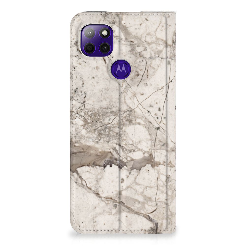 Dit design hoesje met Marmer Beige is voor de artistieke personen onder ons. De Grieken en Romeinen wisten het steen al te waarderen door het als bouw- en bekledingsmateriaal toe te passen. Naast het witte Carrara marmer met haar zacht grijze geaderde belijning zijn de diverse marmersoorten in een ruim kleurenpallet te krijgen. We hebben verschillende kleuren op design hoesjes gezet, zoals in dit geval beige marmer. Dit is een Motorola Moto G9 Power Standcase met marmer in beige kleur. Het marmer wordt bedrukt op alle zijden van een stand case, die beschikt over 1 vakje voor een pasje en toebehoren en een magnetische sluiting aan de binnenkant. Verder heeft de case een houder van TPU. De rijkheid aan kleuren en varianties in afwerking geeft designers de vrijheid om met marmer hele mooie architectonische projecten te realiseren. Wij hebben onze designer ook veel vrijheid gegeven. Het resultaat zie je terug in deze stand case met beige marmer, dat de ideale bescherming voor jouw smartphone biedt.