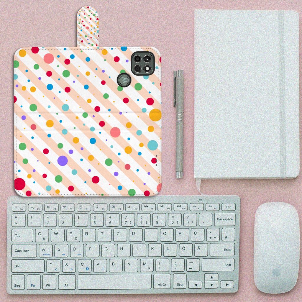 Een Motorola Moto G9 Power Telefoon Hoesje met verschillende kleuren stippen is een schitterende bescherming van jouw smartphone. Het boekhoesje met het design Dots in alle kleuren van de regenboog komt voor jou als geroepen. Maak je geen gebruik van dit zeer mooie hoesje, dan kan het met jouw smartphone een beetje beroerd aflopen. Dit mooie boekhoesje met verschillende kleuren stippen zorgt voor een volledige bescherming van je smartphone en wordt aan alle zijden bedrukt. Sommige stippen staan ook op het magnetische lipje aan de buitenzijde. Verder is de houder aan de binnenzijde van TPU. Jouw telefoon is dus zeer goed opgeborgen en kan geen kant op. Met een hoesje met stippen in verschillende kleuren op alle zijden blijft jouw telefoon volledig in tact. Heb je liever een boekhoesje met stippen in andere opvallende kleuren? Ontwerp dan zelf case met je eigen foto’s en teksten!