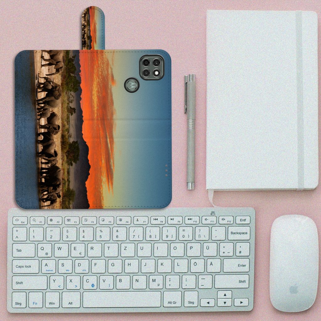 Motorola Moto G9 Power Telefoonhoesje met ruimte voor 3 pasjes Olifanten