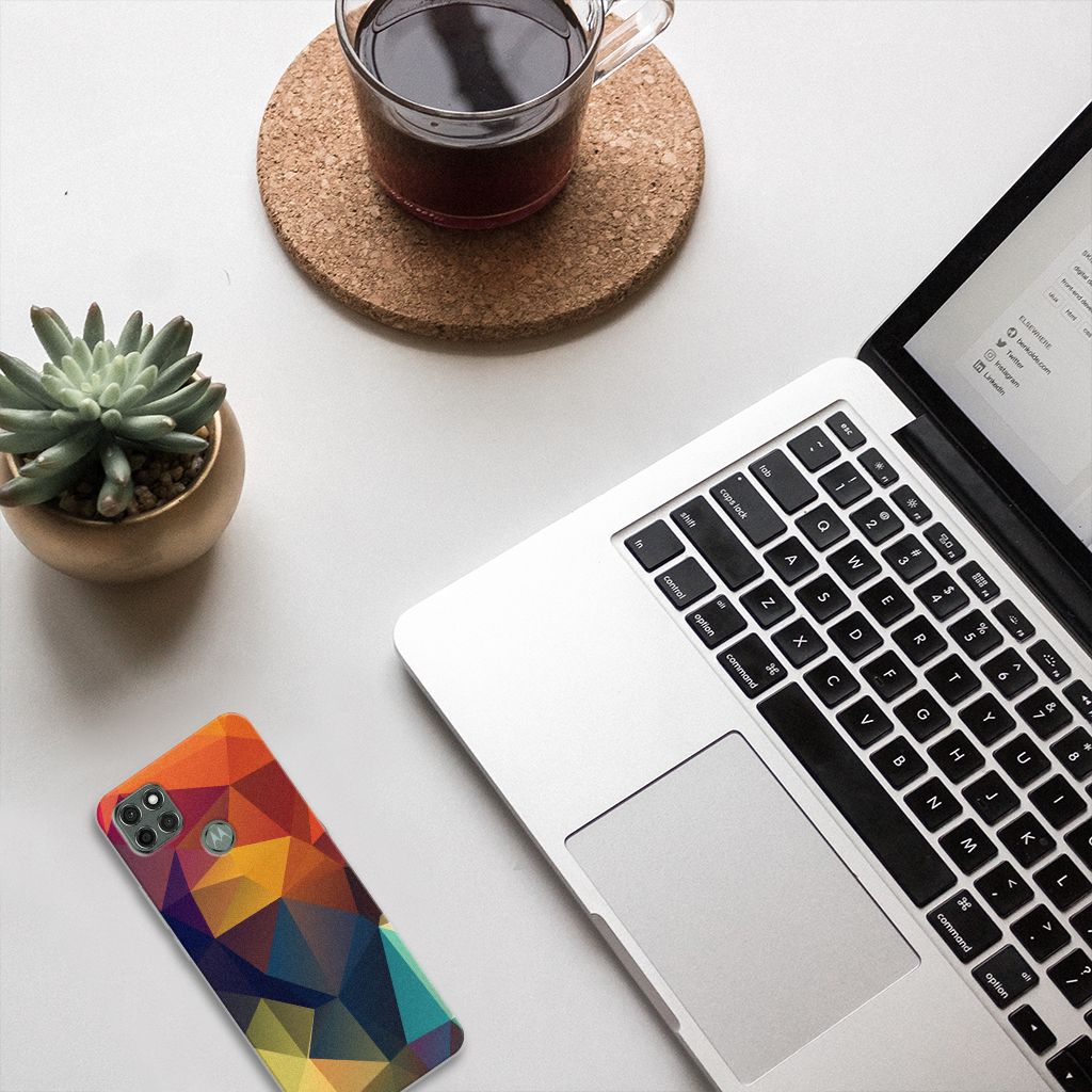 Veelkleurige driehoeken die samen eindeloze asymmetrische patronen lijken te vormen. Het is het abstracte schouwspel dat op dit fraaie hoesje voor je Motorola Moto G9 Power direct de aandacht trekt noemen we voor het gemak trekt noemen we voor het gemak Polygon Color. De een ziet er een berglandschap in, de ander piramides. Wat zie jij erin? Zeker is in elk geval dat de aanblik van dit fascinerende ontwerp je niet snel gaat vervelen. Het kleurige spel van lijnen en vlakken blijft eindeloos boeien en geeft jouw TPU Hoesje een hippe en kunstzinnige uitstraling. De kracht die het lijnenspel uitstraalt, komt ook terug in het hoesje zelf. Dit hoesje wordt alleen aan de bovenkant bedrukt en is zeer flexibel. De randen van het hoesje blijven transparant. Wat wil je nog meer?