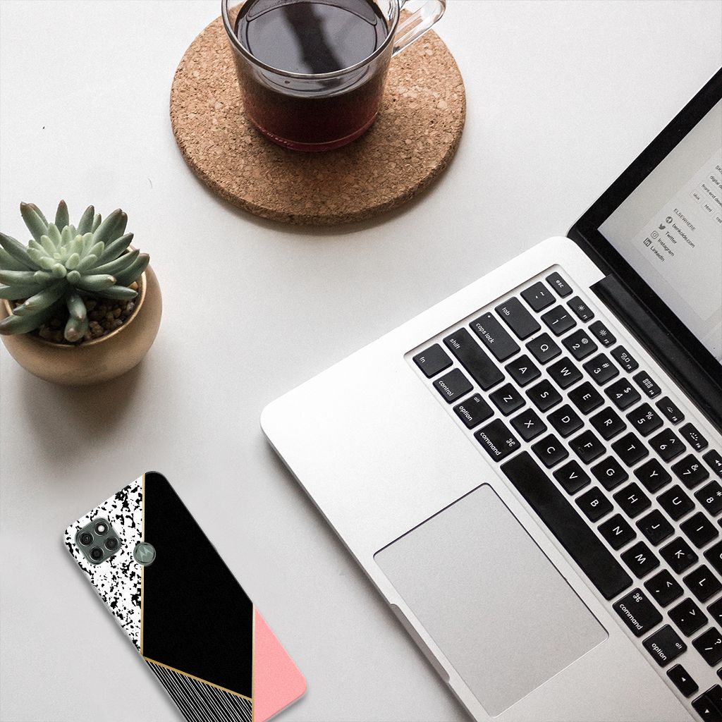 TPU Hoesje Motorola Moto G9 Power Zwart Roze Vormen Design