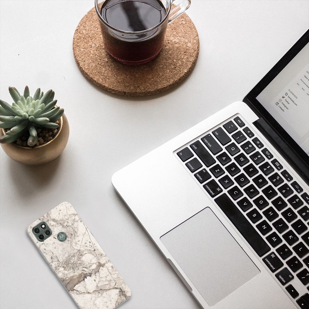 Dit design hoesje met Marmer Beige is voor de artistieke personen onder ons. De Grieken en Romeinen wisten het steen al te waarderen door het als bouw- en bekledingsmateriaal toe te passen. Naast het witte Carrara marmer met haar zacht grijze geaderde belijning zijn de diverse marmersoorten in een ruim kleurenpallet te krijgen. We hebben verschillende kleuren op design hoesjes gezet, zoals in dit geval beige marmer. Dit is een Motorola Moto G9 Power TPU Siliconen Hoesje met marmer in beige kleur. Het marmer wordt bedrukt op de voorkant van een tpu case, die beschikt over opstaande randen aan de voorkant en goed combineert met een screenprotector. De rijkheid aan kleuren en varianties in afwerking geeft designers de vrijheid om met marmer hele mooie architectonische projecten te realiseren. Wij hebben onze designer ook veel vrijheid gegeven. Het resultaat zie je terug in deze tpu case met beige marmer, die jouw smartphone goed beschermt. De zijkanten van de case worden niet bedrukt met marmer.