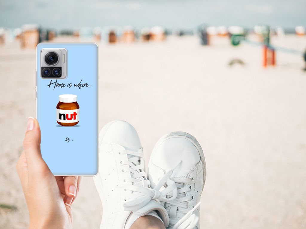 Ben je liefhebber van chocoladepasta, dan is dit het perfecte Motorola Moto X30 Pro Siliconen Case voor jou. De chocoladepasta is enorm populair, dus is het niet zo heel gek dat je een ‘Nut Home’ tpu case in een blauwe kleur aantreft in ons assortiment design hoesjes met illustraties. Dit tpu hoesje is zeer flexibel en past altijd in je broekzak. Alleen de bovenkant van dit hoesje wordt door ons bedrukt in blauwe kleur met de pasta, op zeer duurzame manier. Mensen die houden van de bekendste pasta van het moment, kiezen voor deze blauwe tpu case. Er staan geen illustraties op de zijkanten van een tpu case. Je kunt ook een eigen tekst toevoegen aan het opvallende design.