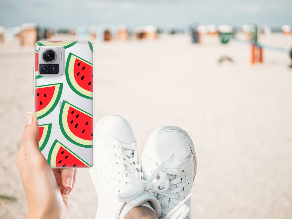 Watermeloenen zijn uitstekende dorstlessers, misschien dat je daarom juist in de zomermaanden extra enthousiast raakt van dit design hoesje Watermelons. Jij blijft gezond als je zo nu en dan een watermeloen neemt, jouw smartphone blijft in tact als je er deze Motorola Moto X30 Pro Siliconen Case omheen doet. Deze tpu case wordt alleen aan de bovenkant bedrukt met watermeloenen is zeer flexibel. De randen van het hoesje blijven transparant. Je kunt ook kiezen voor andere soorten fruit op je hoesje. Kijk maar eens naar onze andere design hoesjes op onze website.