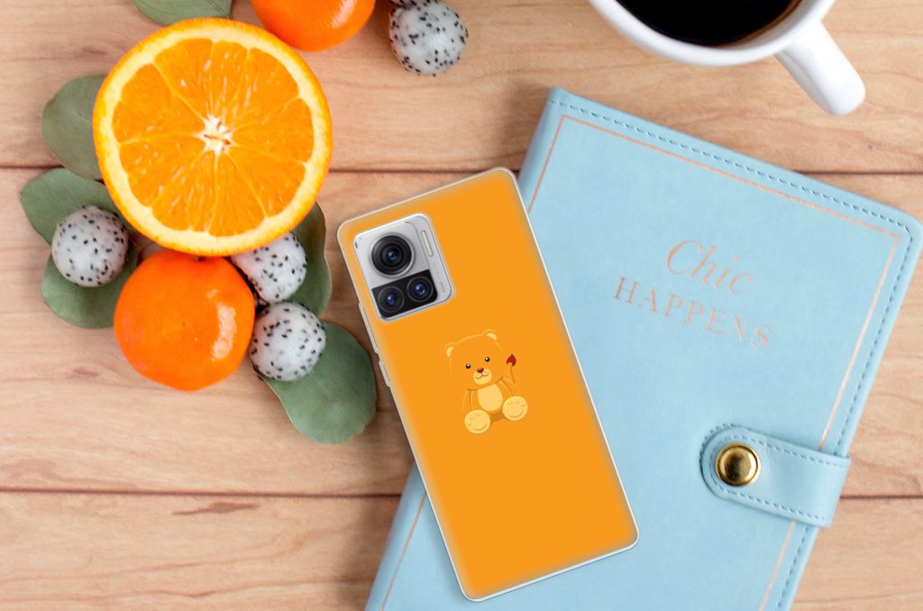 Dit vrolijke teddybeertje zou je het liefst willen knuffelen. Dat wordt lastig, op een telefoonhoesje. Maar dat betekent niet dat dit design niet evengoed onwijs schattig is. Het ontwerp is vanwege de oranje achtergrondkleur evengoed subtiel. Dit Baby Beer-design is perfect voor de knuffelberen onder ons. Dit design staat op een Telefoonhoesje met Naam voor je Motorola Moto X30 Pro. TPU is flexibel en onbreekbaar. Zo is je telefoon aan de achterkant en de randen heel goed beschermd. De case is aan de bovenkant bedrukt, de randen blijven transparant. Het TPU-hoesje is perfect te combineren met een screenprotector, zo zijn je telefoon en je beeldscherm perfect beschermd.
