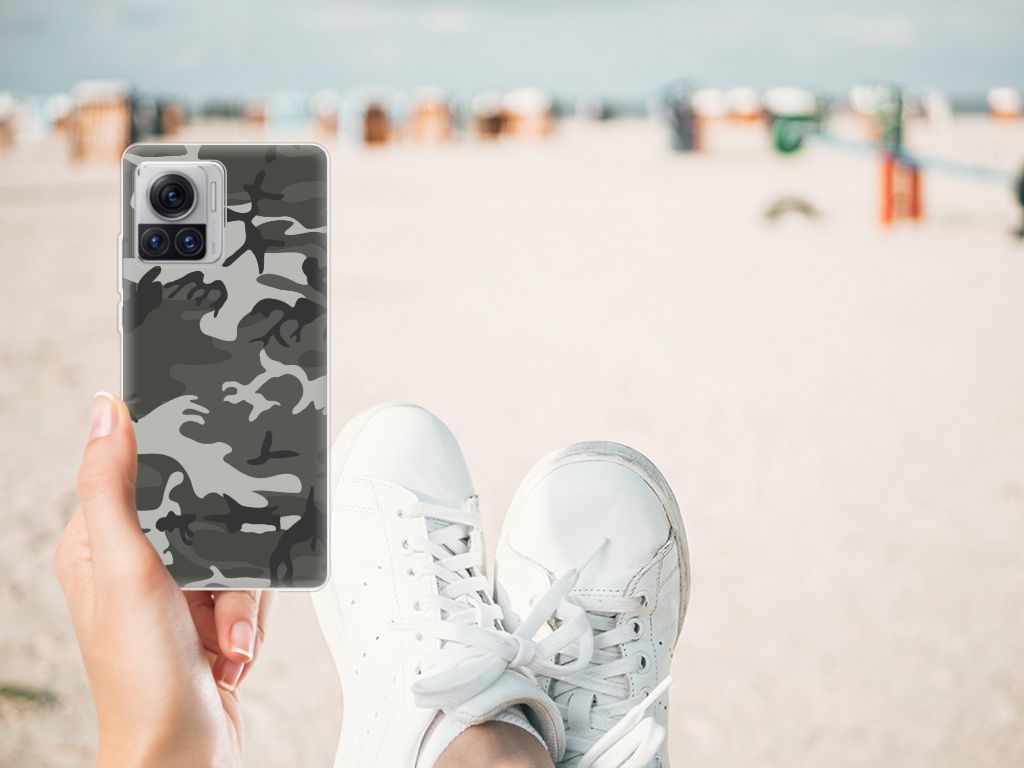 Heb je affiniteit met het leger, dan zal dit telefoonhoesje je zeker bevallen. De Motorola Moto X30 Pro TPU bumper beschikt namelijk over een Army Light print. Camouflage kleding wordt vaak gedragen door mensen die zich graag willen mengen in of met hun omgeving. Dit camouflage hoesje is er dan ook voornamelijk in kleuren die in de natuur voorkomen, zodat je één wordt met je achtergrond. Het design staat op een TPU case. Dit hoesje wordt alleen aan de bovenkant bedrukt en is zeer flexibel. De randen van het hoesje blijven transparant. Beschermt het leger volk en vaderland, dit hoesje in donkere camouflage kleuren zal jouw telefoon onder alle omstandigheden schadevrij houden. Met een leger hoesje in dit soort kleuren zal je niet zo snel opvallen, maar waarschijnlijk ben je daar ook niet naar op zoek. Wel is het een hele stoere case.
