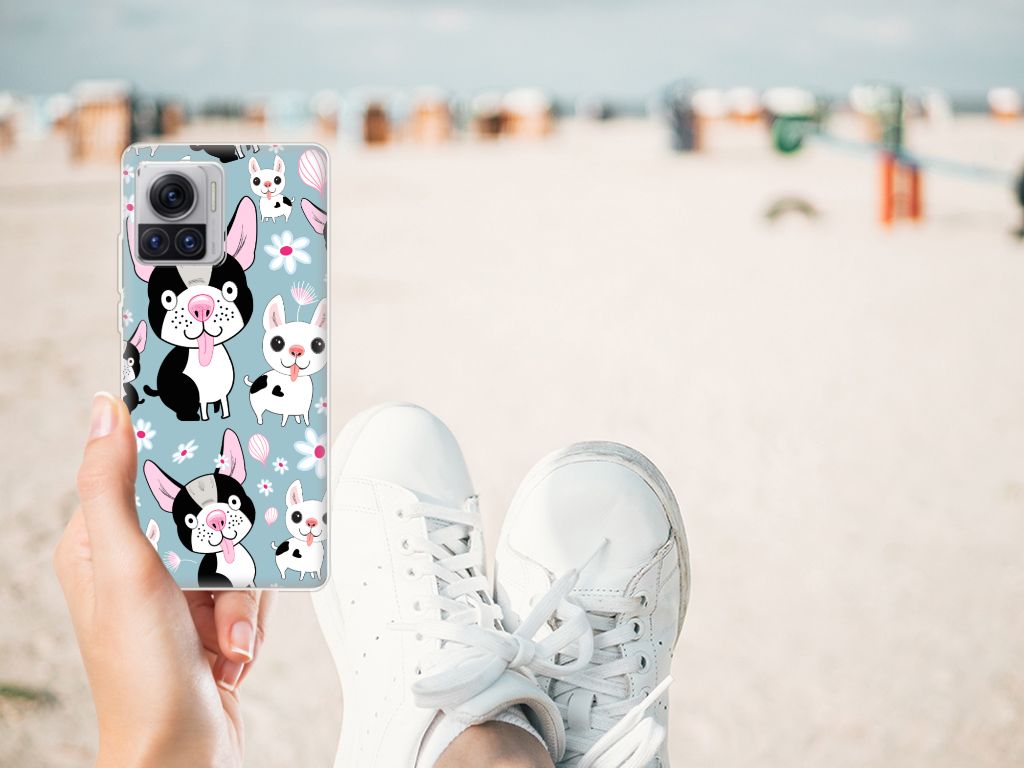 De Hondjes op deze Motorola Moto X30 Pro TPU Hoesje ogen zeer aandoenlijk. Deze hondjes met zwart-witte vacht willen jou zelfs bijna in je armen springen, zo blij zijn ze dat ze op dit design zijn gezet. Het tpu hoesje is een zeer flexibele smartphone case. Dit hoesje met zwarte en witte hondjes is niet alleen zeer praktisch vanwege de opstaande randen aan de voorzijde, maar beschermt je smartphone ook nog eens zeer goed. Op de bovenkant van de tpu case, die altijd in je broekzak past, staan de vrolijke hondjes. Veel Nederlanders hebben momenteel een hond als huisdier. Honden zijn dus erg populair. Net als deze tpu case, die wel eens het ideale cadeautje zou kunnen zijn voor jouw vriendin of dochter. De case blijft aan de zijkanten doorzichtig.