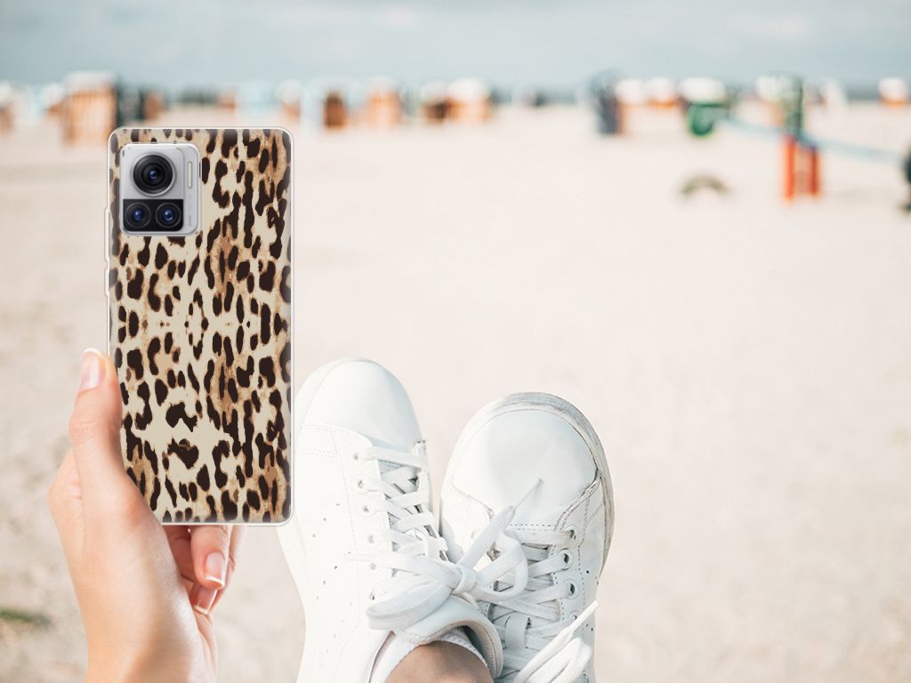 Het luipaard wordt ook wel een panter genoemd. De bruingele vacht met een patroon van rozetachtige vlekken geeft een hele goede schutkleur. Dit zie je ook op een fraaie manier afgebeeld op dit super stoere hoesje met luipaardprint. Mensen die indruk willen maken kopen deze tpu case met Leopard print. Een Motorola Moto X30 Pro TPU Hoesje is erg flexibel en stevig. Het is praktisch – door het elastische materiaal neem je de telefoon makkelijk met je mee – en beschermt jouw smartphone aan de achterzijde en zijkanten zeer goed. Het luipaard is sterk en behendig en wellicht typeert jou dat ook wel. Dan past dit hoesje met luipaard perfect bij jou. De houder van TPU is minstens zo sterk als het luipaard. Jouw telefoon is zeer goed beschermd. De case heeft alle uitsparingen die nodig zijn. De randen blijven transparant. Enkele de bovenzijde wordt bedrukt met luipaardprint.