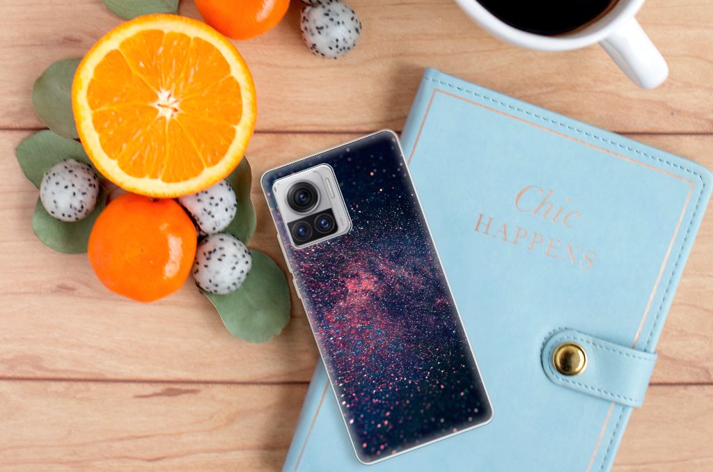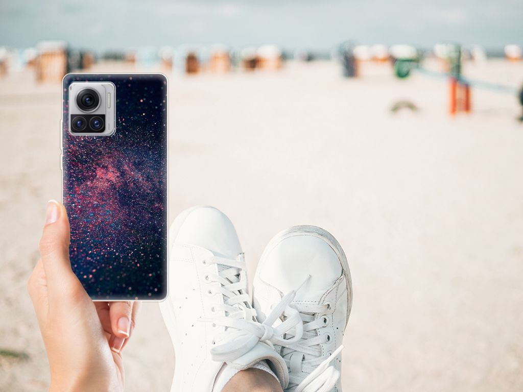 Je waant je in de zevende hemel met dit kunstzinnige, glitterachtige design hoesje met paarse en blauwe kleuren tegen een inktzwarte achtergrond. Het smartphone hoesje heeft ook een wat science fiction achtige allure. Met deze design Stars case zul je zeker opvallen. Als dit je bedoeling is, bestel dat snel dit waanzinnig mooie product voor je Motorola Moto X30 Pro. Het telefoonhoesje is van alle gemakken voorzien en combineert een hele fraaie uitstraling met maximaal comfort. Bovendien is het gemaakt van zeer stevig en flexibel materiaal. Het unieke design, door B2C Telecom ontworpen, staat op een TPU Hoesje. Dit hoesje wordt alleen aan de bovenkant bedrukt en is zeer flexibel. De randen van het hoesje blijven transparant en worden niet bedrukt. Met dit hoesje past jouw telefoon altijd in je broekzak.