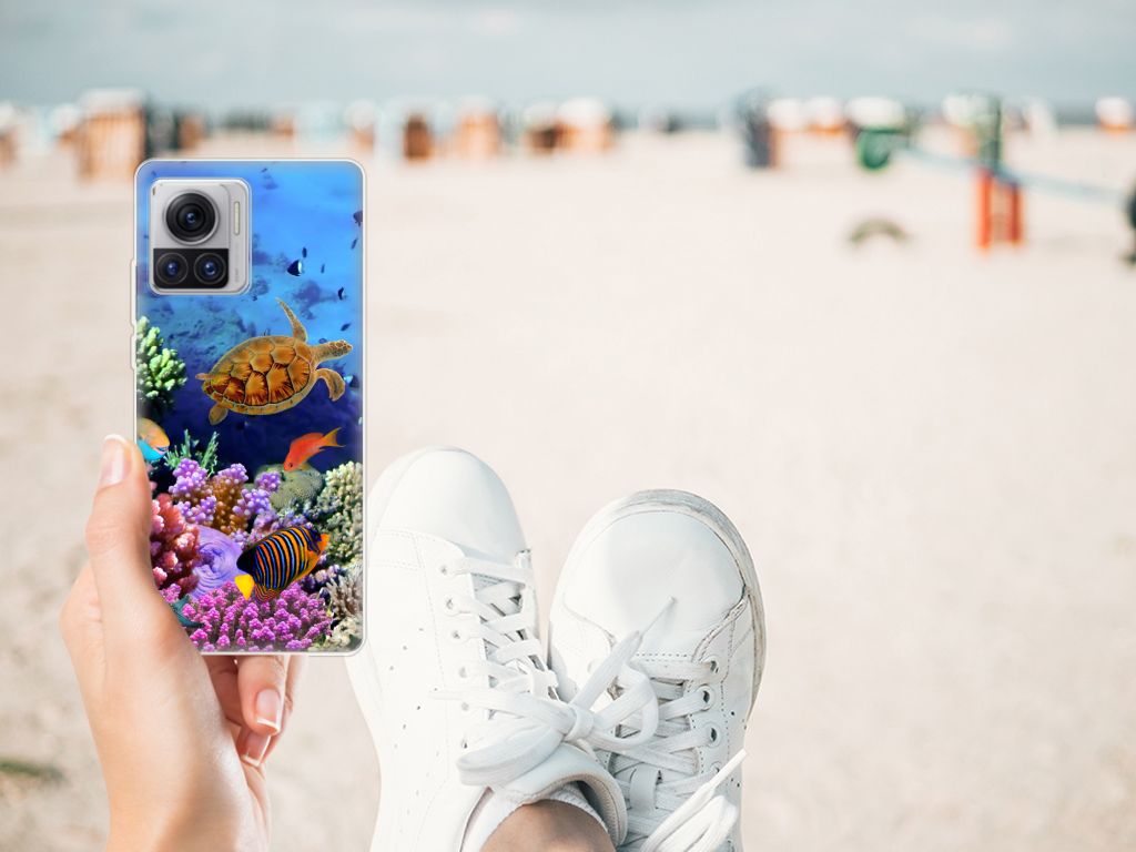 Dit kleurrijke hoesje met tropische Vissen is een ware eyecatcher. Als je aan het duiken bent en je treft een school aan met dit soort opvallende vissen, dan heb je een geweldige ervaring. Maar je hoeft er eigenlijk niet per se het water voor in te duiken. Want wij hebben een schitterende verzameling vissen op dit design hoesje gezet. Met onze zeer geavanceerde printer zetten we de afbeelding van vissen op de bovenkant van de Motorola Moto X30 Pro TPU Hoesje, de randen blijven transparant. De case is gemaakt van zeer elastisch en onbreekbaar materiaal. Verder is je telefoon natuurlijk goed beschermd met deze tpu case met print van vissen. Deze case heeft tevens opstaande randen, waardoor je scherm de grond niet zal raken als de smartphone uit je handen valt.