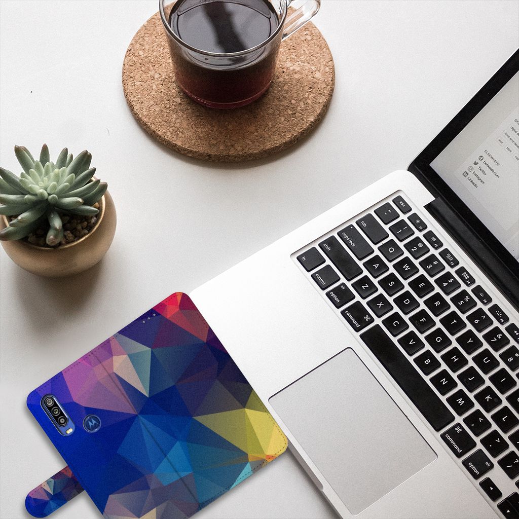 Motorola One Action Book Case met ruimte voor 3 pasjes Polygon Dark