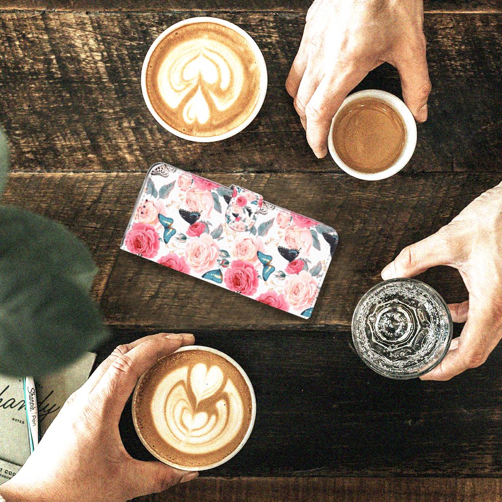 Motorola One Action Hoesje gemaakt van TPU en kunstleer Butterfly Roses