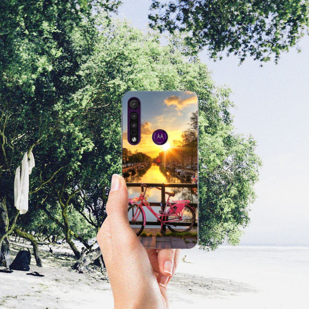 Amsterdam is meer dan ooit een toeristische trekpleister. Een bezoek aan de hoofdstad is niet compleet als je niet aanlegt bij de Amsterdamse Grachten. Ze zijn een symbool van de stad en hebben een enorme culturele en historische waarde. Daarom kunnen ze natuurlijk niet ontbreken in onze collectie design hoesjes. Dit schitterende design hoesje met Amsterdamse grachten tref je enkel en alleen aan bij B2C Telecom. De ondergaande zon en de fleurige en fraaie bloempakketten zorgen voor een prachtig totaalplaatje. Amsterdam is wereldberoemd om haar prachtige grachten uit de zeventiende eeuw. Dit smartphone hoesje is hier een eerbetoon aan. Het design staat op een TPU case. Dit Motorola One Macro Siliconen Back Cover wordt alleen aan de bovenkant bedrukt en is zeer flexibel. De randen van het hoesje blijven transparant.