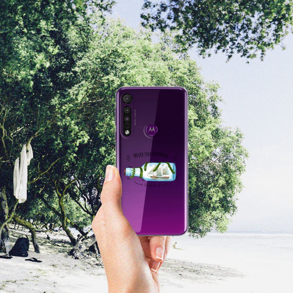 Dit leuke design met een schip in een fles is voor de echte avonturier of reiziger. Dankzij de tekst ‘Never stop exploring: Go for it’ word je altijd herinnerd aan het feit dat het volgende avontuur weer op de loer ligt! Dit design staat op een Telefoonhoesje met Naam voor je Motorola One Macro. TPU is flexibel en heel erg sterk. Zo is je telefoon aan de achterkant en de randen heel goed beschermd. De case is aan de bovenkant bedrukt, de randen blijven transparant. Het TPU-hoesje is perfect te combineren met een screenprotector, zo zijn je telefoon en je beeldscherm altijd goed beschermd.