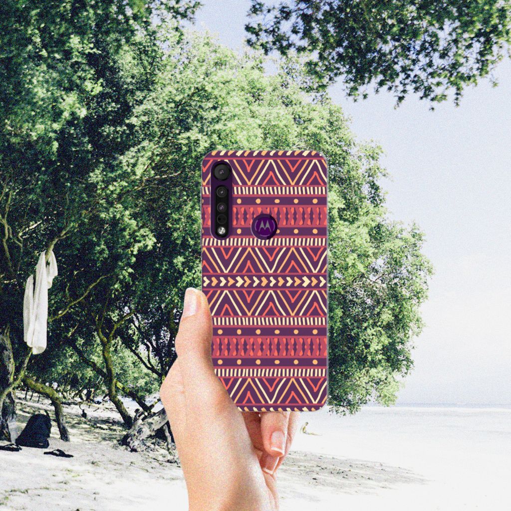 De Azteken leefden tussen 1200 en 1521 in het huidige Mexico. De mooie Aztec-patronen waar zij bekend om stonden, zien we nu nog op kleding, stoffen en tassen. Wie had toen kunnen bedenken dat we diezelfde prints honderden jaren later zelfs op een telefoonhoesje zouden vinden? Dit kleurrijke Aztec Purple-hoesje is perfect voor iedereen die een stukje geschiedenis bij zich wil dragen maar ook gewoon een mooi patroon op zijn hoesje wil. Dit vrolijke, kleurrijke ontwerp staat op een TPU bumper voor de Motorola One Macro. TPU is flexibel en onbreekbaar. Zo is je telefoon aan de achterkant en de randen heel goed beschermd. De case is aan de bovenkant bedrukt, de randen blijven transparant.