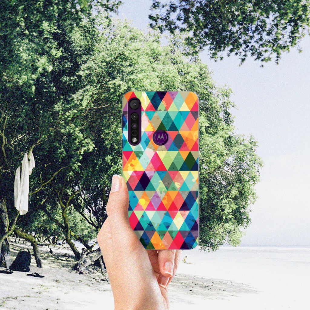 Van dit geruite design hoesje moet je een beetje houden. Maar als je het eenmaal in bezit hebt, ben je waarschijnlijk binnen no time verkocht. Het design heeft ruitjes in alle kleuren van de regenboog en door de grijze achtergrond kan het hoesje enigszins druk overkomen. Maar tegelijkertijd is dit de kracht van het hoesje. Met dit design hoesje Geruit zal je namelijk heel erg opvallen. Dit is voor veel vooral jonge smartphone gebruikers een belangrijk voordeel. Deze geruite print staat op een Motorola One Macro TPU bumper. Dit zeer flexibele smartphone hoesje heeft alle nodige uitsparingen en past altijd in je broekzak. De case is aan de bovenkant bedrukt, de randen blijven transparant.
