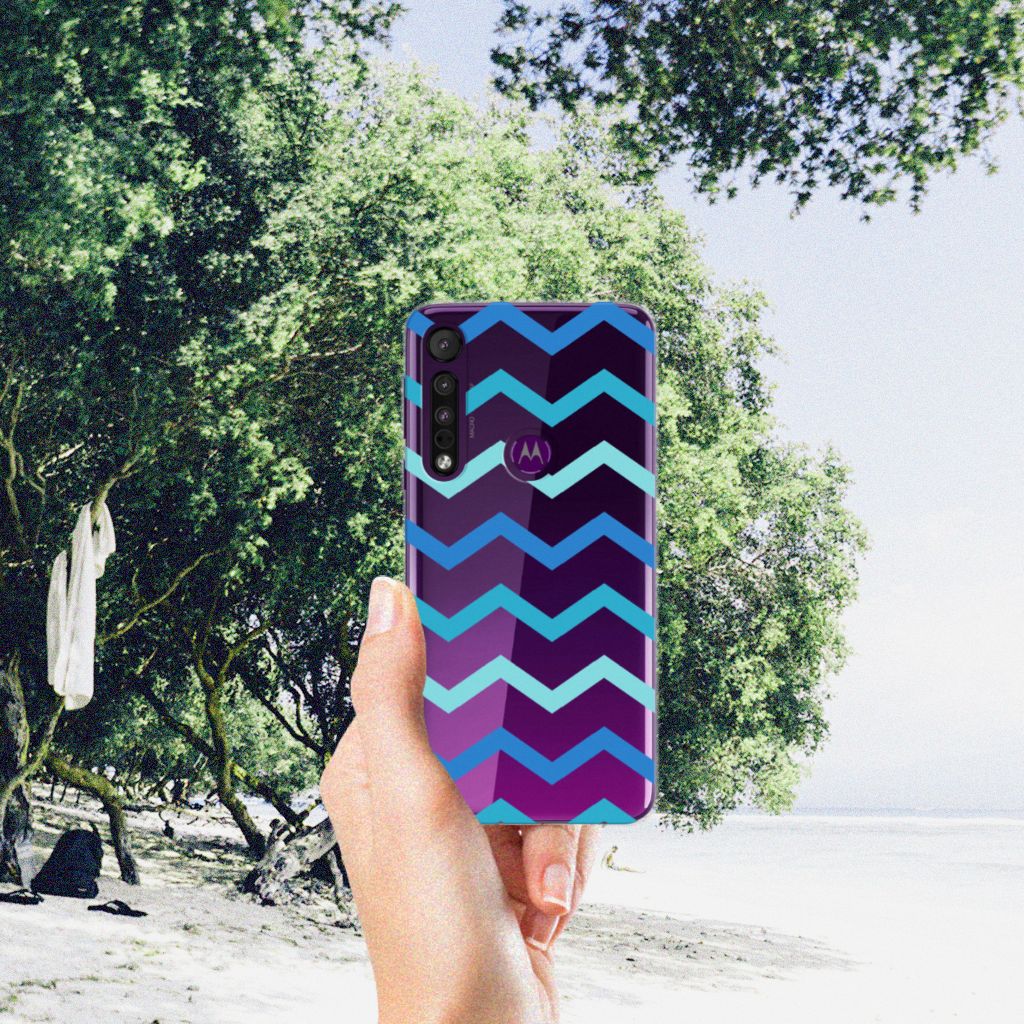 Dit zigzag blauwe design hoesje is speciaal ontworpen voor jou. We hebben bewust verschillende stijlen blauw gebruikt, zodat er voldoende sprake is van variatie. Dit blauwwitte TPU bumper ziet er super strak uit. Dat kan ook niet anders, als je weet dat onze zeer talentvolle designer er hoogstpersoonlijk voor verantwoordelijk is. Hij schudt wekelijks nieuwe designs uit zijn mouw en dit zigzag blauwe hoesje is een van zijn fraaiste creaties. Een heel dik design hoesje, al zeggen we het zelf. Valt dit blauwwitte design hoesje goed bij jou? Bestel het dan vandaag nog en je hebt het morgen in huis. Het design staat op een TPU case. Dit hoesje wordt alleen aan de bovenkant bedrukt en is zeer flexibel. De randen van het hoesje blijven transparant en worden niet bedrukt. Met dit hoesje past jouw Motorola One Macro altijd in je broekzak.