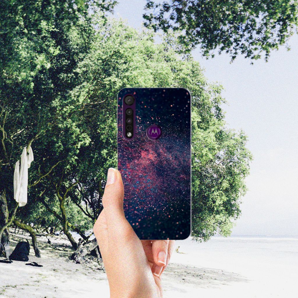 Je waant je in de zevende hemel met dit kunstzinnige, glitterachtige design hoesje met paarse en blauwe kleuren tegen een inktzwarte achtergrond. Het smartphone hoesje heeft ook een wat science fiction achtige allure. Met deze design Stars case zul je zeker opvallen. Als dit je bedoeling is, bestel dat snel dit waanzinnig mooie product voor je Motorola One Macro. Het telefoonhoesje is van alle gemakken voorzien en combineert een hele fraaie uitstraling met maximaal comfort. Bovendien is het gemaakt van zeer stevig en flexibel materiaal. Het unieke design, door B2C Telecom ontworpen, staat op een TPU Hoesje. Dit hoesje wordt alleen aan de bovenkant bedrukt en is zeer flexibel. De randen van het hoesje blijven transparant en worden niet bedrukt. Met dit hoesje past jouw telefoon altijd in je broekzak.