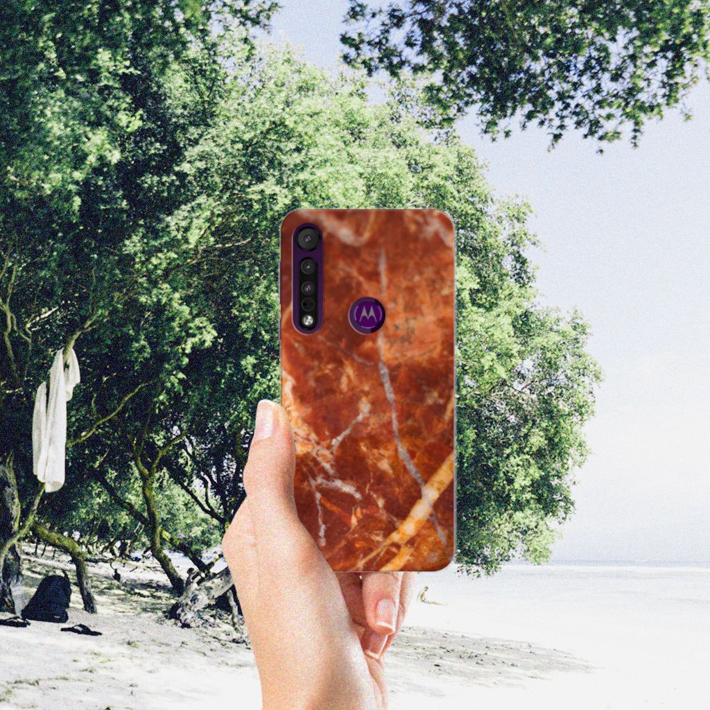 Dit design hoesje met Marmer Bruin is voor de artistieke personen onder ons. De Grieken en Romeinen wisten het al te waarderen door het als bouw- en bekledingsmateriaal toe te passen. Naast het witte Carrara marmer met haar zacht grijze geaderde belijning zijn de diverse soorten in een ruim kleurenpallet te krijgen. We hebben verschillende kleuren op design hoesjes gezet, zoals in dit geval bruin marmer. Dit is een Motorola One Macro TPU Siliconen Hoesje met marmer in bruine kleur. Het marmer wordt bedrukt op de voorkant van een tpu case, die beschikt over opstaande randen aan de voorkant en heel goed combineert met een screenprotector. De rijkheid aan kleuren en varianties in afwerking geeft ontwerpers de vrijheid om met marmer hele mooie architectonische projecten te realiseren. Wij hebben onze designer ook veel vrijheid gegeven. Het resultaat zie je terug in deze tpu case met bruin marmer, die jouw smartphone goed beschermt. De zijkanten van de case worden niet bedrukt met marmer.