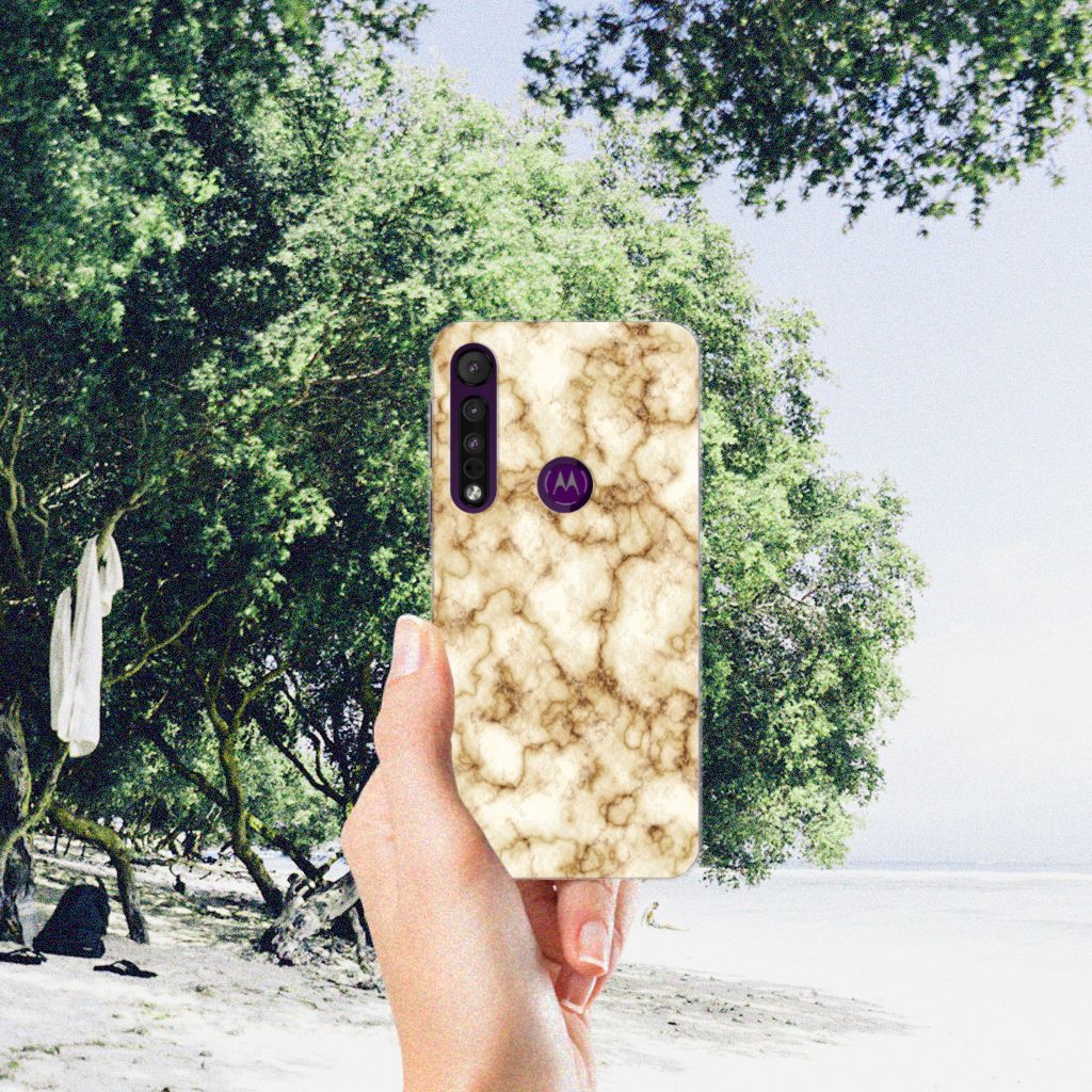 Deze Motorola One Macro TPU Siliconen Hoesje met Marmer Goud is het waard om een blokje voor om te rijden. Dit is overigens niet nodig. Als je het hoesje met goud marmer nu bestelt heb je het zeer snel in huis. Je kunt er bij wijze van spreken thuis op gaan zitten wachten. Je hebt diverse soorten marmer. We hebben enkele fraaie kleuren op onze hoesjes gezet, zoals in dit geval het gouden marmer. Het goud marmer wordt bedrukt op de achterkant van de tpu case, die beschikt over alle nodige uitsparingen waardoor je alle knoppen en poorten van je smartphone kunt bedienen. Verder is de case met goud marmer gemaakt van zeer flexibel materiaal. De rijkheid aan kleuren en varianties in afwerking is een schitterende eigenschap van marmer. Dit tpu hoesje met goud marmer heeft ook veel schitterende eigenschappen en is de ideale bescherming voor jouw smartphone.