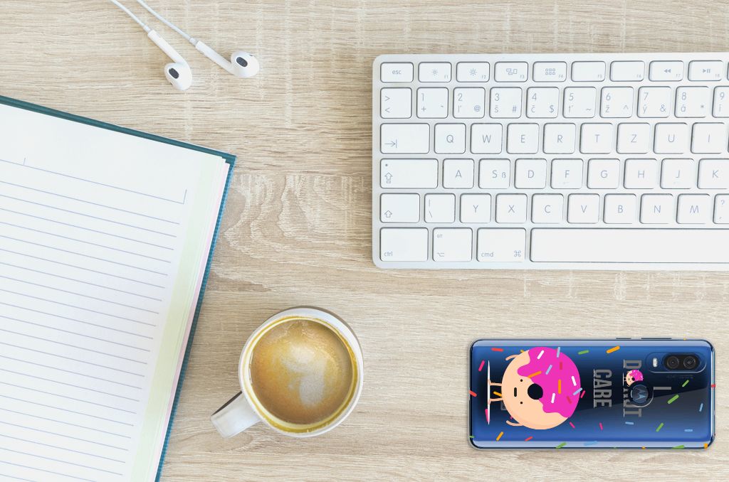 De cartoon met Donut op dit design hoesje geeft jouw smartphone een grappige en vrolijke uitstraling. De Motorola One Vision Siliconen Case zorgt ervoor dat je je schouders op zult halen als je telefoon een keer op de grond valt. Omdat er geen schade zal optreden kun jij je weg weer heel makkelijk vervolgen. De grappige Donut Care tpu case is nergens anders te krijgen. Het design is namelijk van de hand van onze eigen ontwerper. Daarnaast zal de case jouw smartphone goed beschermen. Een Donut Care tpu case is een zeer flexibel hoesje. Dit komt onder andere door het elastische en onbreekbare materiaal. Verder is de case zeer praktisch. Wat denk je bijvoorbeeld van de opstaande randen aan de voorkant. Verder beschikt de case ook nog eens over alle noodzakelijke uitsparingen. Ook kun je zelf je eigen unieke hoesje ontwerpen, met eigen cartoons, foto’s en teksten. Een Donut Care tpu case wordt alleen aan de bovenkant bedrukt. De randen blijven volledig doorzichtig.