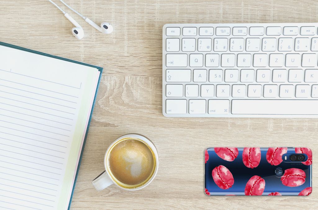 Dit tpu hoesje met Pink Macarons is een zeer opvallende bescherming voor jouw smartphone. Macarons zijn Franse koekjes: kleine, rond en luchtig. Ze worden in veel verschillende smaken gemaakt, herkenbaar aan de verschillende kleuren zoals chocolade (donkerbruin), mokka (middenbruin), kersen (rood), pistache (groen), aardbei (roze), framboos (karmijn). Deze kleuren kun je niet allemaal zien op dit fraaie design hoesje met roze macarons. Heb je altijd al een Motorola One Vision Siliconen Case willen hebben met roze macarons? Grijp dan nu je kans. Deze case heeft zeer veel goede eigenschappen, zoals elastisch vermogen, flexibiliteit en schokbestendigheid. Dit design hoesje met roze macarons wordt aan de bovenkant bedrukt, de zijkanten blijven doorzichtig. De case heeft opstaande randen aan de voorzijde en beschermt samen met een screenprotector jouw telefoon perfect. De case heeft ook een handige standaard.
