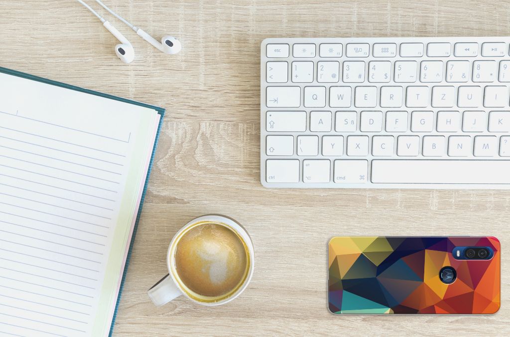 Veelkleurige driehoeken die samen eindeloze asymmetrische patronen lijken te vormen. Het is het abstracte schouwspel dat op dit fraaie hoesje voor je Motorola One Vision direct de aandacht trekt noemen we voor het gemak trekt noemen we voor het gemak Polygon Color. De een ziet er een berglandschap in, de ander piramides. Wat zie jij erin? Zeker is in elk geval dat de aanblik van dit fascinerende ontwerp je niet snel gaat vervelen. Het kleurige spel van lijnen en vlakken blijft eindeloos boeien en geeft jouw TPU Hoesje een hippe en kunstzinnige uitstraling. De kracht die het lijnenspel uitstraalt, komt ook terug in het hoesje zelf. Dit hoesje wordt alleen aan de bovenkant bedrukt en is zeer flexibel. De randen van het hoesje blijven transparant. Wat wil je nog meer?