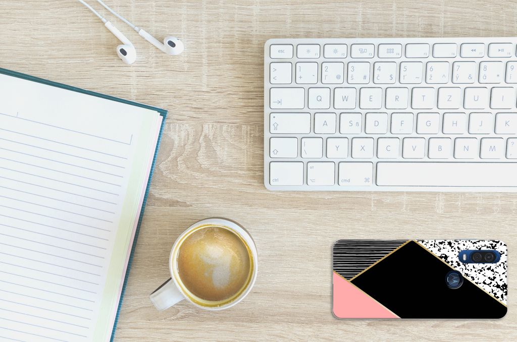 TPU Hoesje Motorola One Vision Zwart Roze Vormen Design