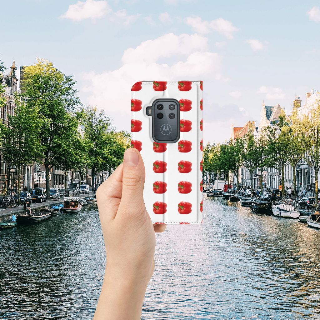 Er zit pit in jouw Motorola One Zoom Flip Style Cover dankzij dit design met rode paprika’s. Paprika’s zijn er in allerlei kleuren en vormen en ze hebben gemeen dat ze heel erg gezond zijn. De rode paprika’s op deze case staan op een grijs met witte geblokte achtergrond en vormen een opvallende verschijning. Heb jij ooit iemand in je nabije omgeving rond zien lopen met een design hoesje met rode paprika’s? Waarschijnlijk niet. Dit stand hoesje met rode paprika’s beschermt jouw telefoon aan alle zijden en beschikt over een opbergvakje voor een pasje of briefgeld. De case sluit perfect af met de magneet aan de binnenzijde. Zeker weten dat je met dit hoesje met rode paprika’s een smartphone accessoire te pakken hebt waarmee je jezelf in de schijnwerpers zet. De houder aan de binnenzijde van de stand case met rode paprika’s is van TPU. Als je andere kleuren paprika’s op je hoesje wilt, raden we je aan ons assortiment design hoesjes te bekijken of zelf een hoesje te ontwerpen.