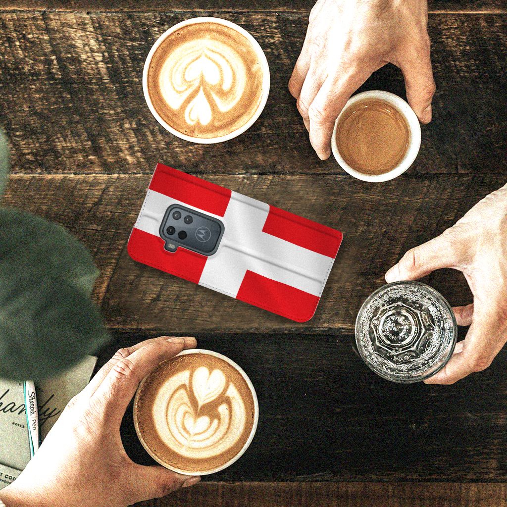 Vroeger werden vlaggen gebruikt om een boodschap over te brengen of een ridderorde aan te duiden. Tegenwoordig worden vlaggen gebruikt voor verschillende doeleinden. Een vlag kan worden gebruikt om te verwijzen naar een land, stad of beweging. Het staat symbool voor de nationaliteit van de mens. In onze collectie hebben wij alle Europese vlaggen opgenomen. De vlag wordt gedrukt op een Standcase voor de Motorola One Zoom en heeft een vakje voor pasjes. Het fijne aan dit hoesje is dat je het horizontaal als standaard neer kunt zetten. Door de magneten aan de binnenkant wordt het hoesje afgesloten. Ook bieden wij de mogelijkheid om gratis je naam toe te voegen om het hoesje helemaal af te maken. Wil je meer vrijheid om het hoesje helemaal naar eigen wens te maken? Ga dan verder met ontwerpen in ons unieke ontwerpprogramma.