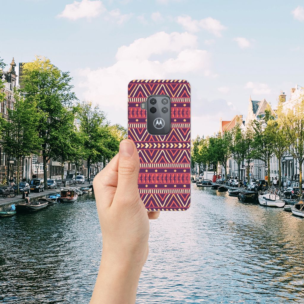 De Azteken leefden tussen 1200 en 1521 in het huidige Mexico. De mooie Aztec-patronen waar zij bekend om stonden, zien we nu nog op kleding, stoffen en tassen. Wie had toen kunnen bedenken dat we diezelfde prints honderden jaren later zelfs op een telefoonhoesje zouden vinden? Dit kleurrijke Aztec Purple-hoesje is perfect voor iedereen die een stukje geschiedenis bij zich wil dragen maar ook gewoon een mooi patroon op zijn hoesje wil. Dit vrolijke, kleurrijke ontwerp staat op een TPU bumper voor de Motorola One Zoom. TPU is flexibel en onbreekbaar. Zo is je telefoon aan de achterkant en de randen heel goed beschermd. De case is aan de bovenkant bedrukt, de randen blijven transparant.