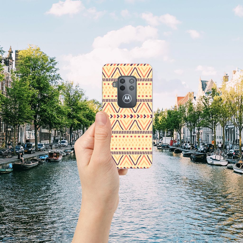 De Azteken leefden tussen 1200 en 1521 in het huidige Mexico. De mooie Aztec-patronen waar zij bekend om stonden, zien we nu nog op kleding, stoffen en tassen. Wie had toen kunnen bedenken dat we diezelfde prints honderden jaren later zelfs op een telefoonhoesje zouden vinden? Dit kleurrijke Aztec Yellow-hoesje is perfect voor iedereen die een stukje geschiedenis bij zich wil dragen maar ook gewoon een mooi patroon op zijn hoesje wil. Dit vrolijke, kleurrijke ontwerp staat op een TPU bumper voor de Motorola One Zoom. TPU is flexibel en onbreekbaar. Zo is je telefoon aan de achterkant en de randen heel goed beschermd. De case is aan de bovenkant bedrukt, de randen blijven transparant.