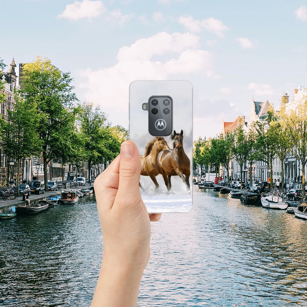 Voor de paardenliefhebbers onder ons hebben we onze collectie uitgebreid met dit design hoesje met print van paarden. Vroeger hield de mens vooral werkpaarden, inmiddels hebben we vriendschap gesloten met het paard. Vandaar dat het ook een favoriet dier is op onze smartphonehoesjes, zoals deze tpu case. Een TPU Hoesje voor de Motorola One Zoom met Paarden is niet alleen super mooi en chique, maar ook nog eens zeer flexibel. Verder is de case schokabsorberend en heeft het opstaande randen. Zie je liever je eigen paard terug op een hoesje. Dat kan! Door zelf een uniek hoesje te ontwerpen, met eigen foto’s en teksten. De TPU case wordt aan de bovenzijde bedrukt, de zijkanten blijven transparant.